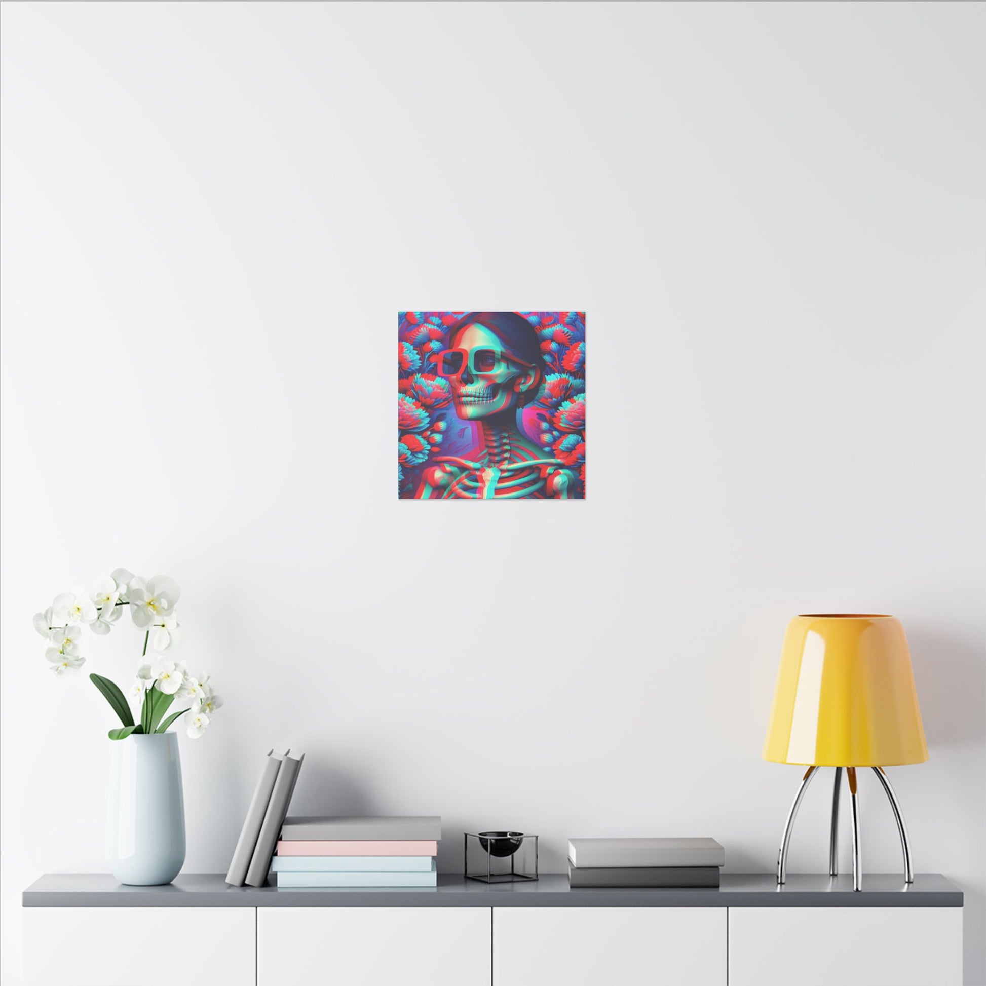 Immerse in surreal beauty: a bold anaglyph with vibrant red-cyan hues, skeletal highlights, & floral accents with sharp clarity. #AnaglyphArt #SurrealCanvas #VividDesigns"