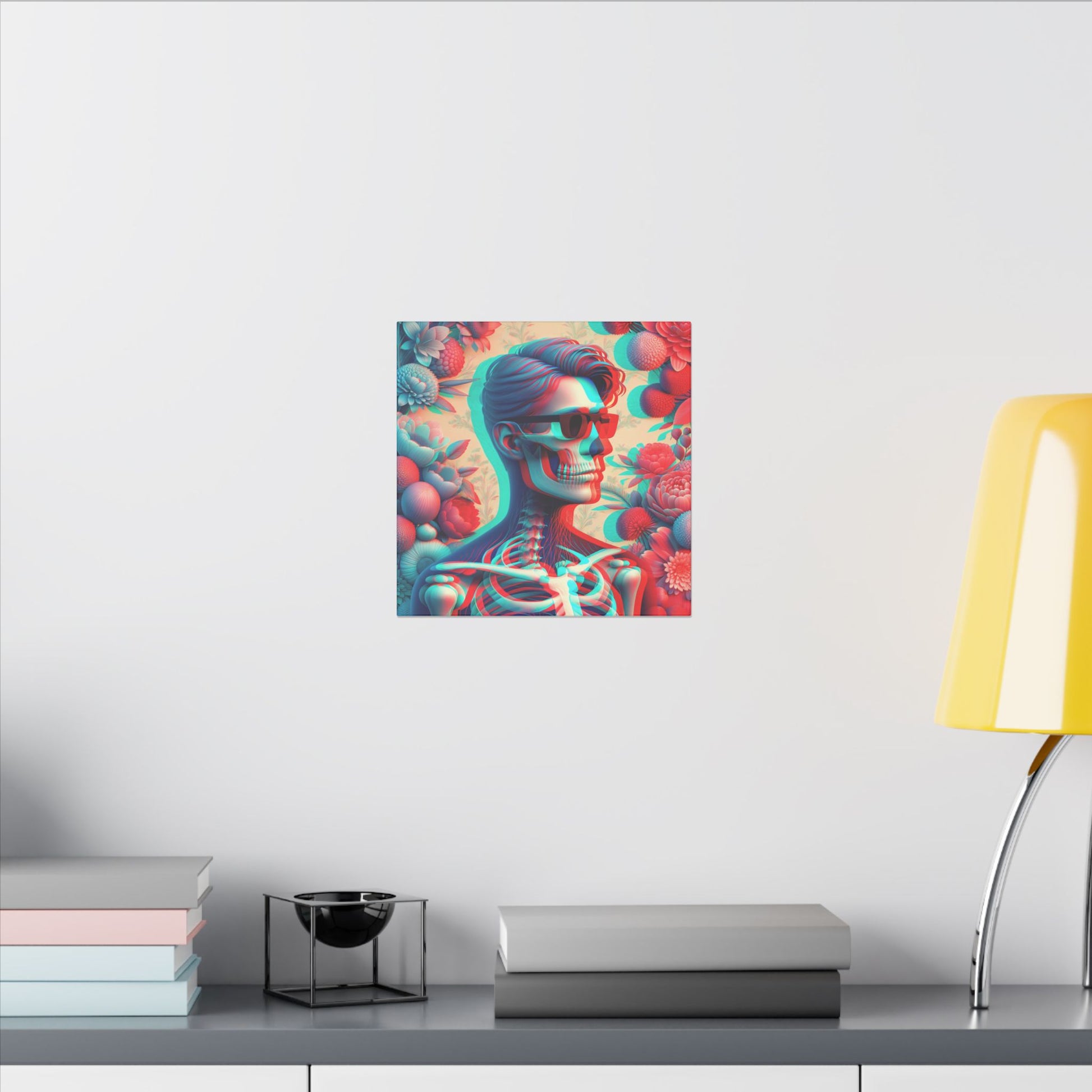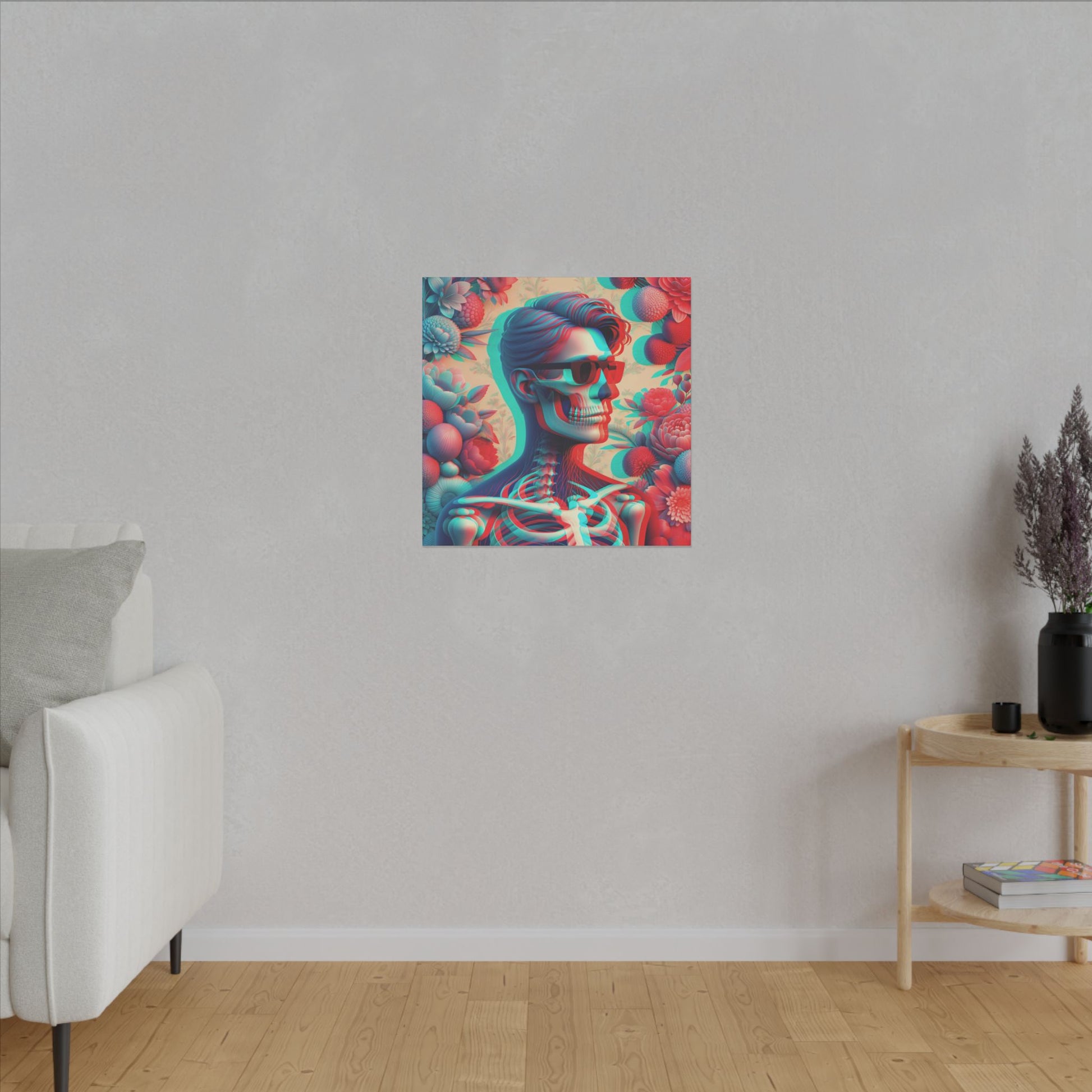 A mesmerizing fusion of human form and floral elegance, this bold anaglyph-style canvas showcases a translucent figure with a visible skeletal structure. Overlapping red and cyan hues create a surreal, dreamlike effect, highlighting the subject's clear, captivating gaze. #SurrealArt #Anaglyph #EtherealBeauty #ModernCanvas #PsychedelicVibes