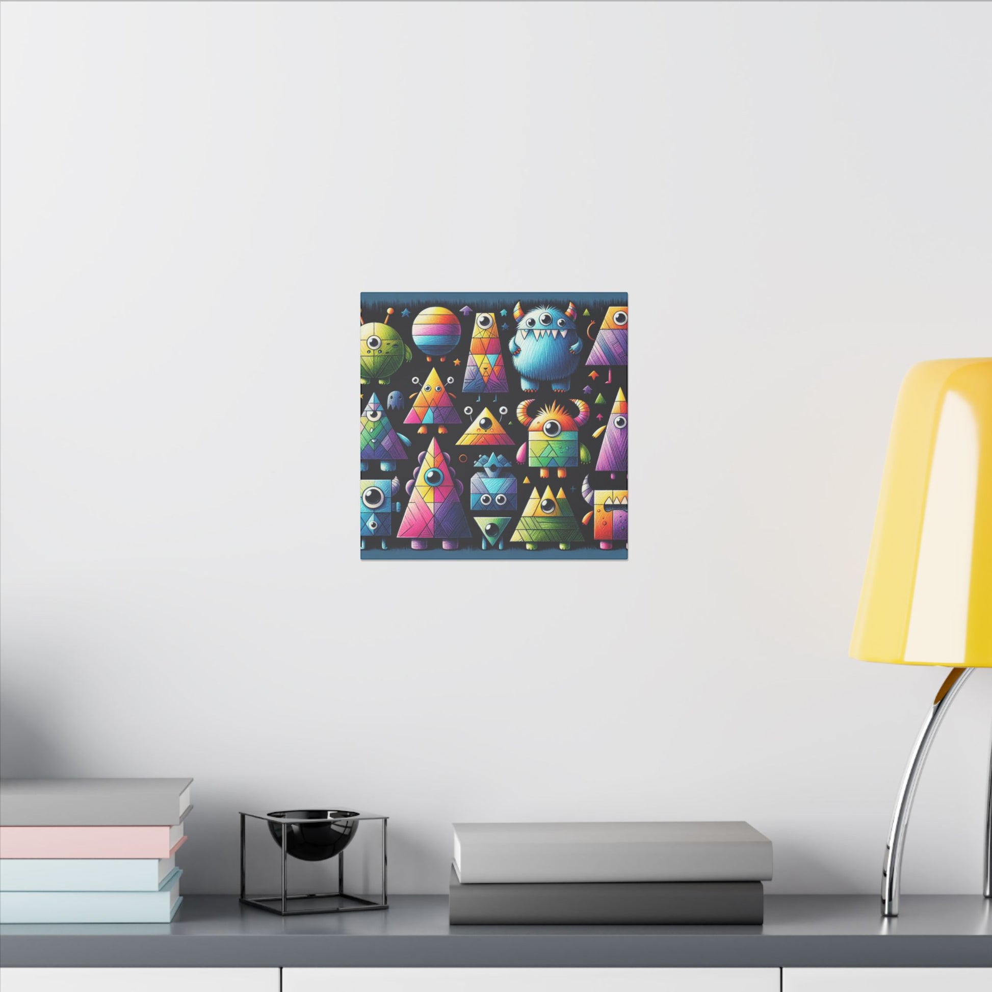 Introducing our adorable canvas featuring a whimsical crayon drawing of a cute and colorful monster! With its geometric body and captivating design, this artwork will instantly add charm to any space. Against a dark blue background, this piece will bring joy and playfulness to your home decor. Handcrafted with love, this canvas is perfect for art enthusiasts and children alike. Let this cute monster brighten up your walls and ignite your imagination!