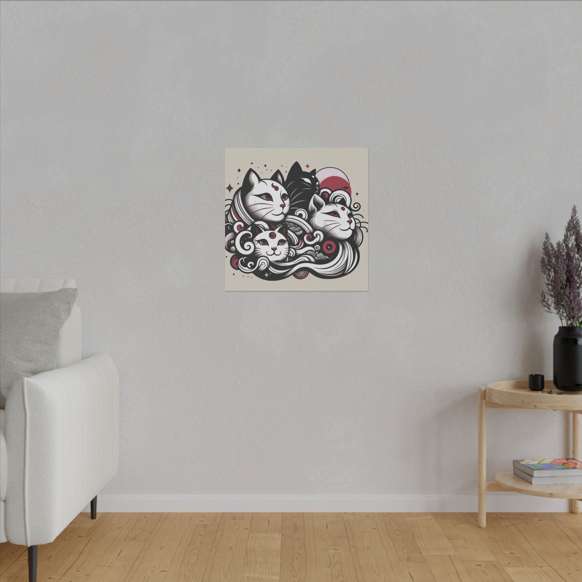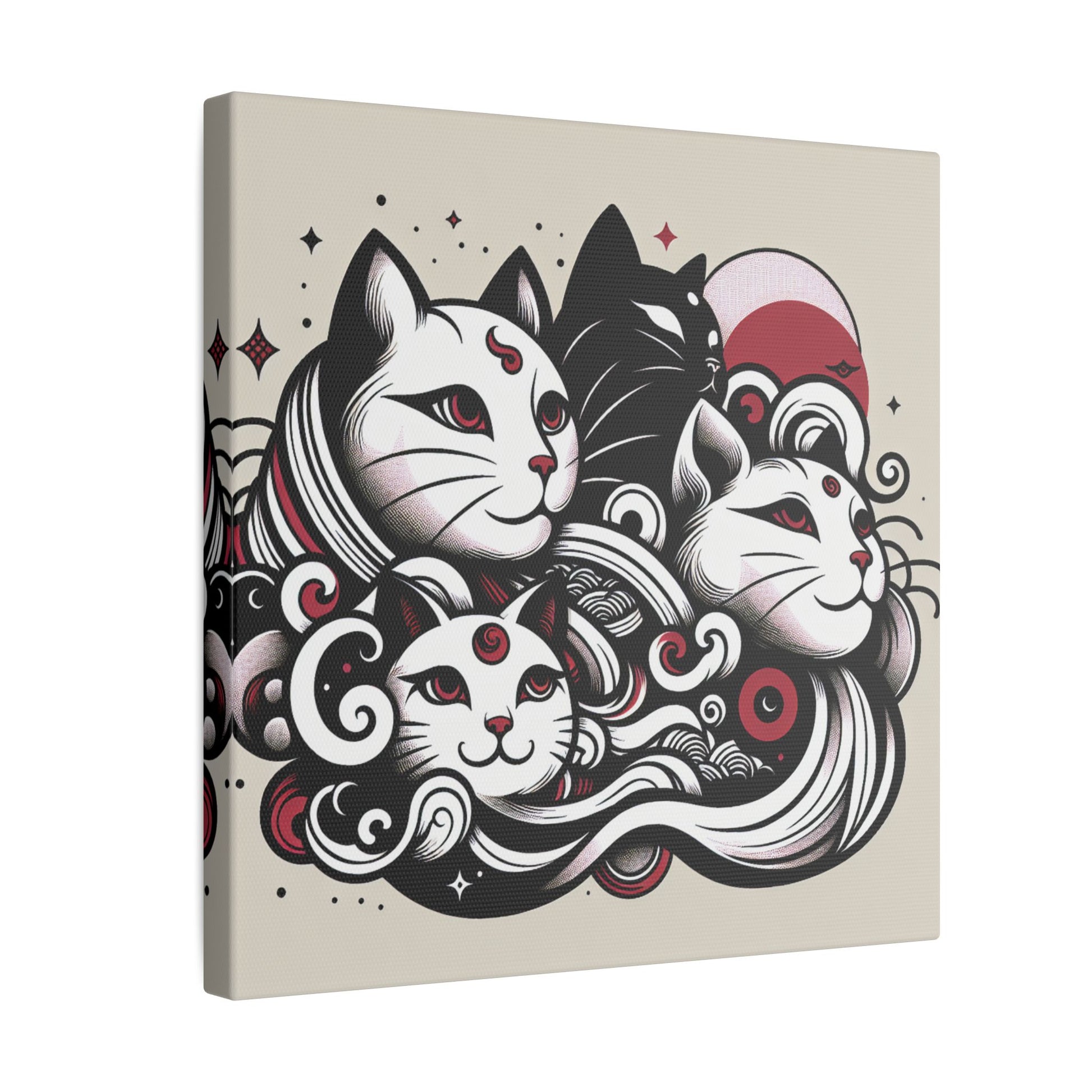 Unleash the charm of anime with this striking canvas featuring bold-lined cats in a captivating black, white, and red palette. Perfect for any anime lover's space, its high-resolution design ensures every whisker and vibrant detail stands out. Add an edgy, playful touch to your walls today!