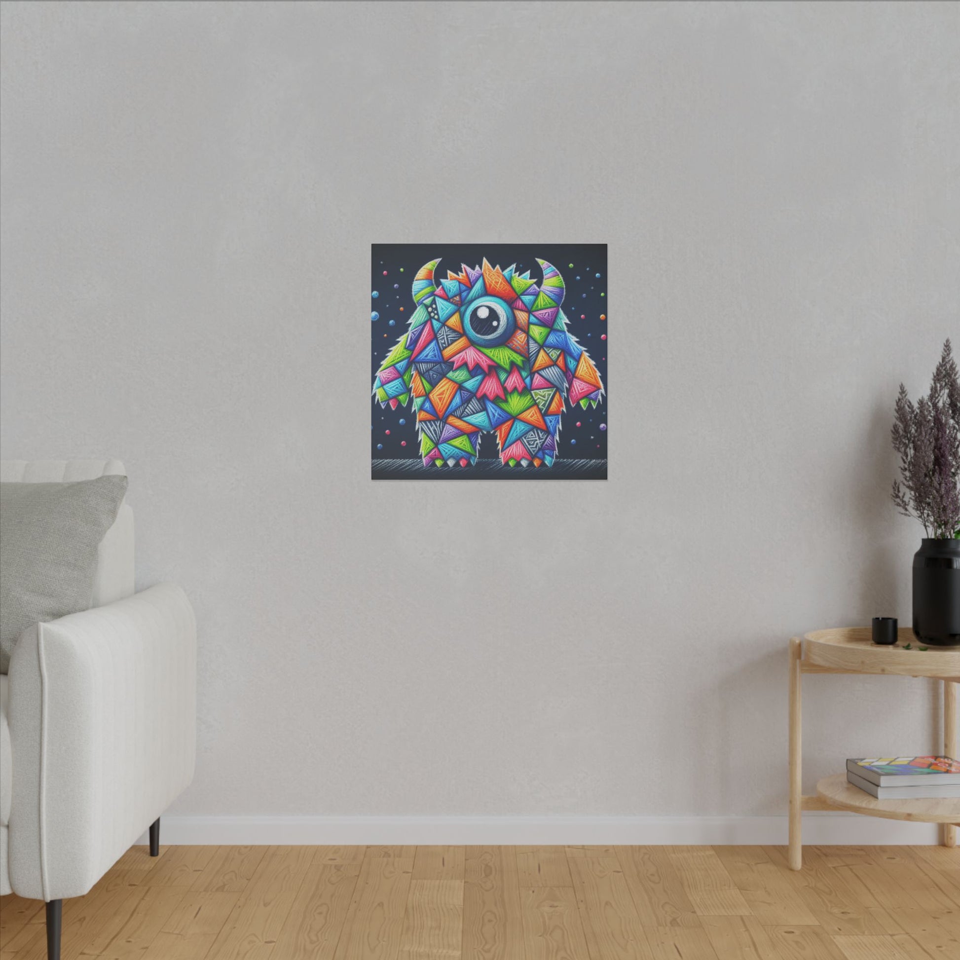 Introducing our adorable and vibrant canvas featuring a charming, colorful monster with geometric bodies! This delightful crayon drawing is the perfect addition to any art collection. The monster's whimsical design is fully centered on a rich, dark blue background, creating a striking contrast. This unique piece is guaranteed to bring a touch of joy and playfulness to your space. Order now and embrace the cuteness!