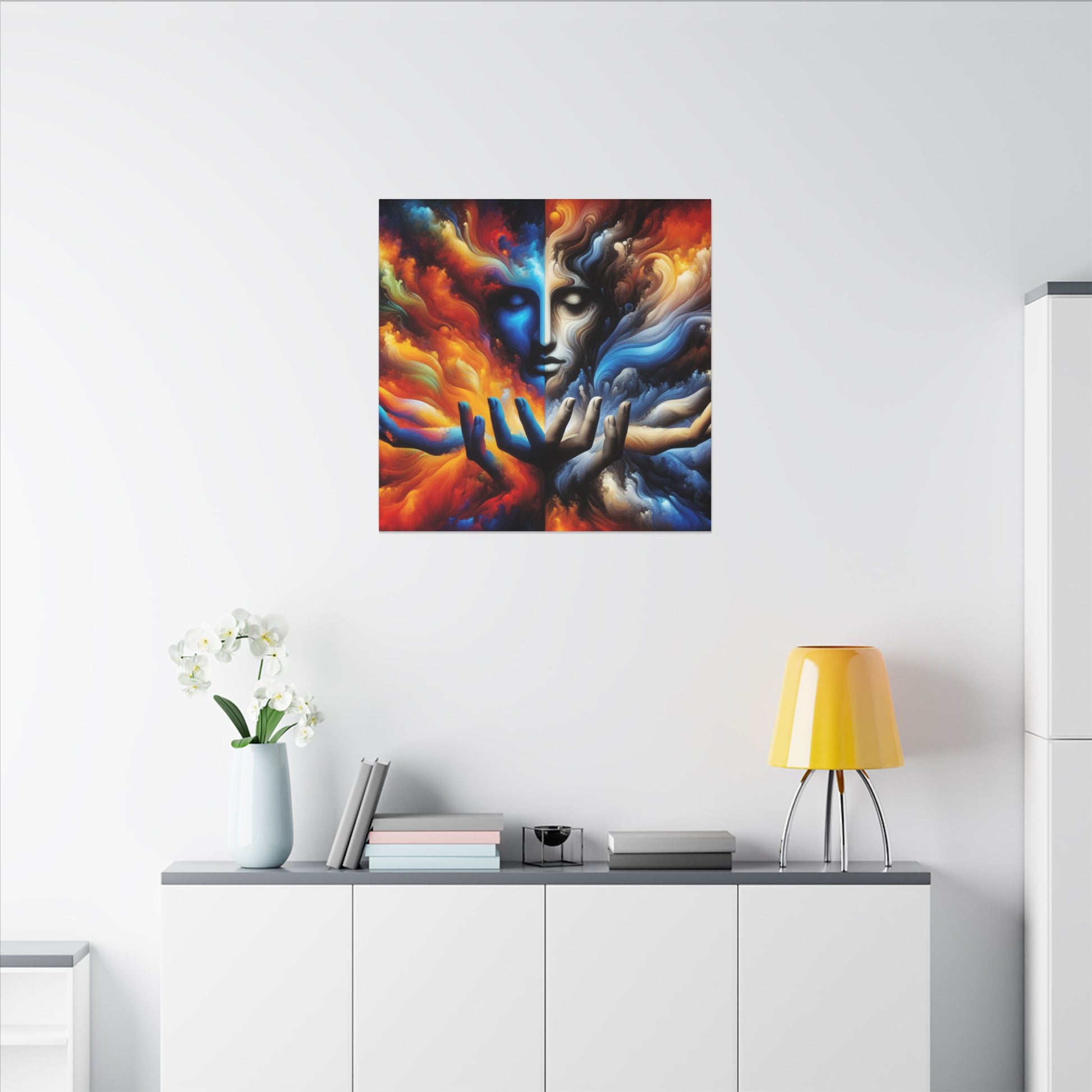 Discover a captivating canvas that combines two contrasting themes in a striking visual juxtaposition. Diverge into the world of Create an image that is a visual juxtaposition using two contrasting themes, concepts, or elements where contrasting colors, textures, and styles come together to create a compelling narrative. Uncover the interconnectedness of two opposing ideas and evoke deep reflection with this unique artwork. #canvasart #contrastingthemes #uniquedesign #dramaticcomposition #artlover #interconnected #reflectiveart #strikingcolors #dynamicstyle #emotionalelements