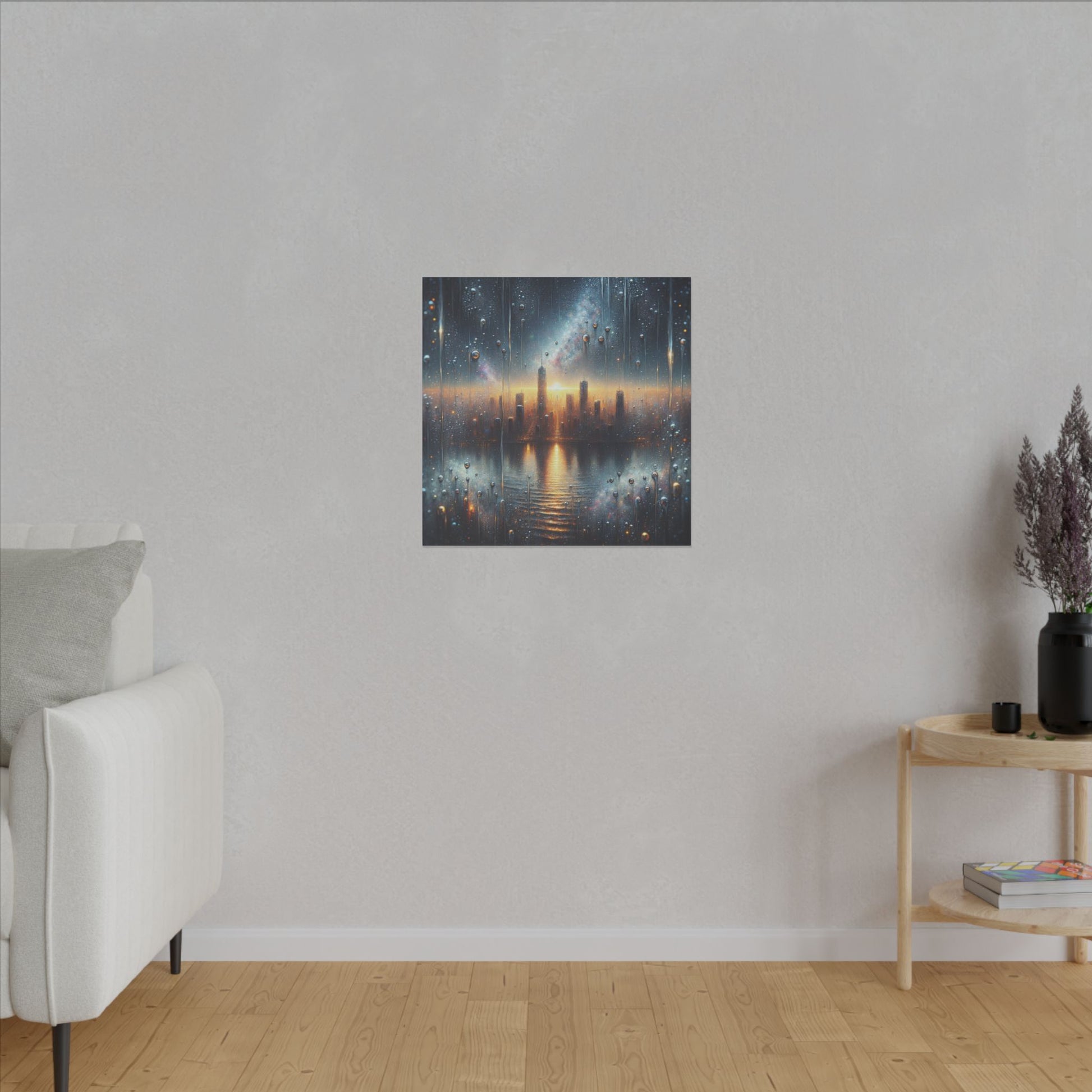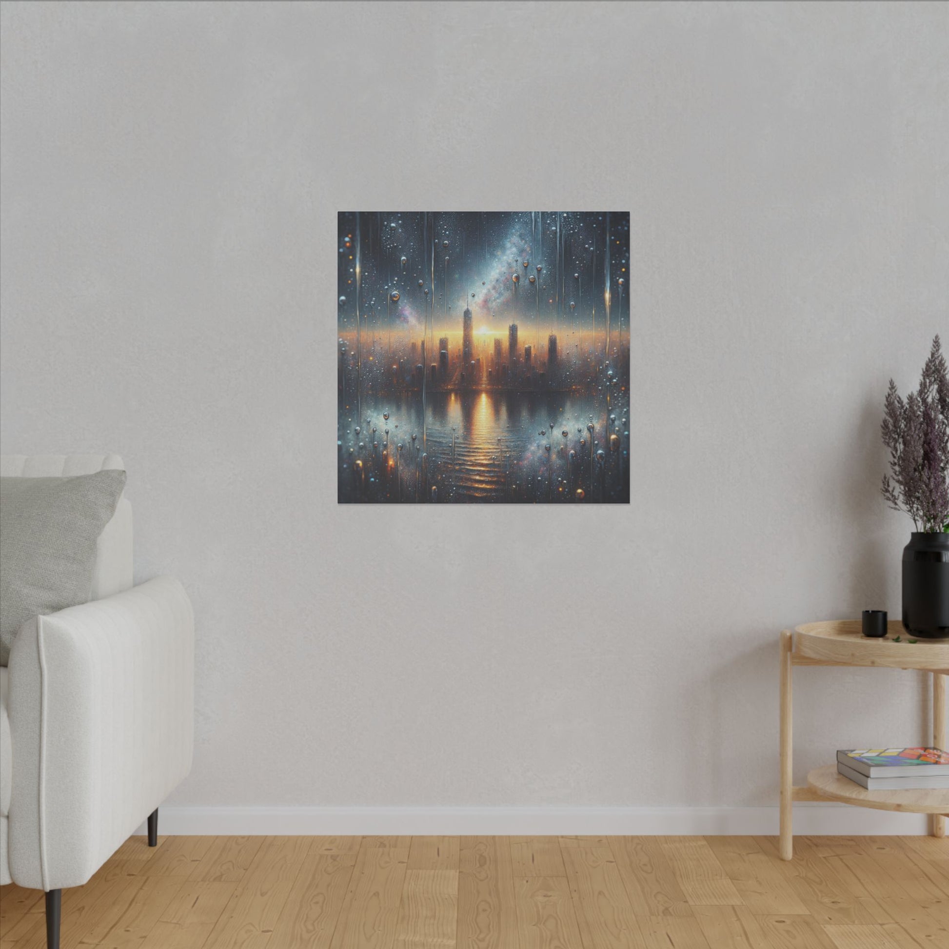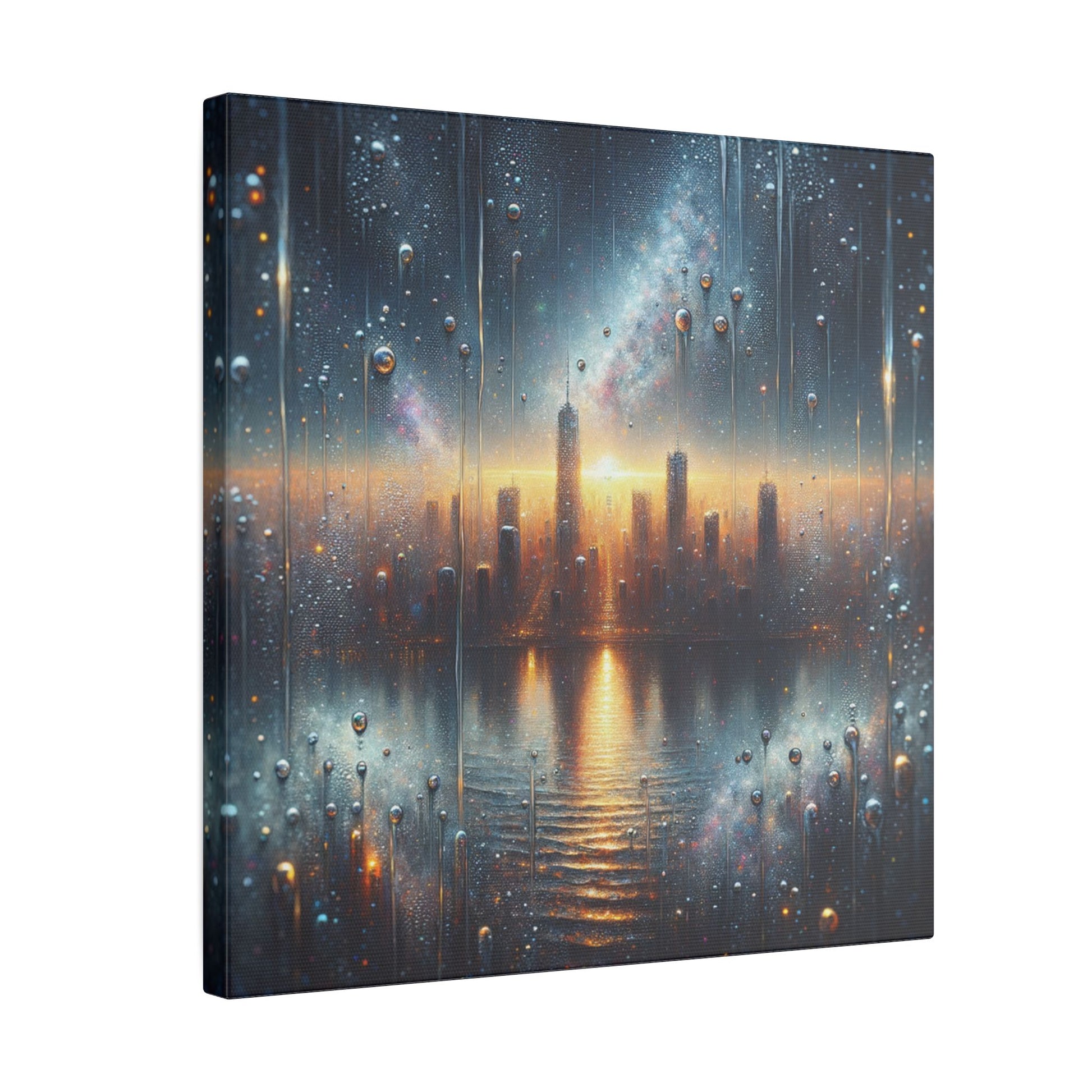 Immerse yourself in stunning realism with this hyper-detailed canvas portraying delicate water droplets on glass. A dreamy blurred backdrop of a cityscape adds to the depth and mystery. Perfect for inspiring spaces. #WallArt #CanvasDecor #UniqueDesigns