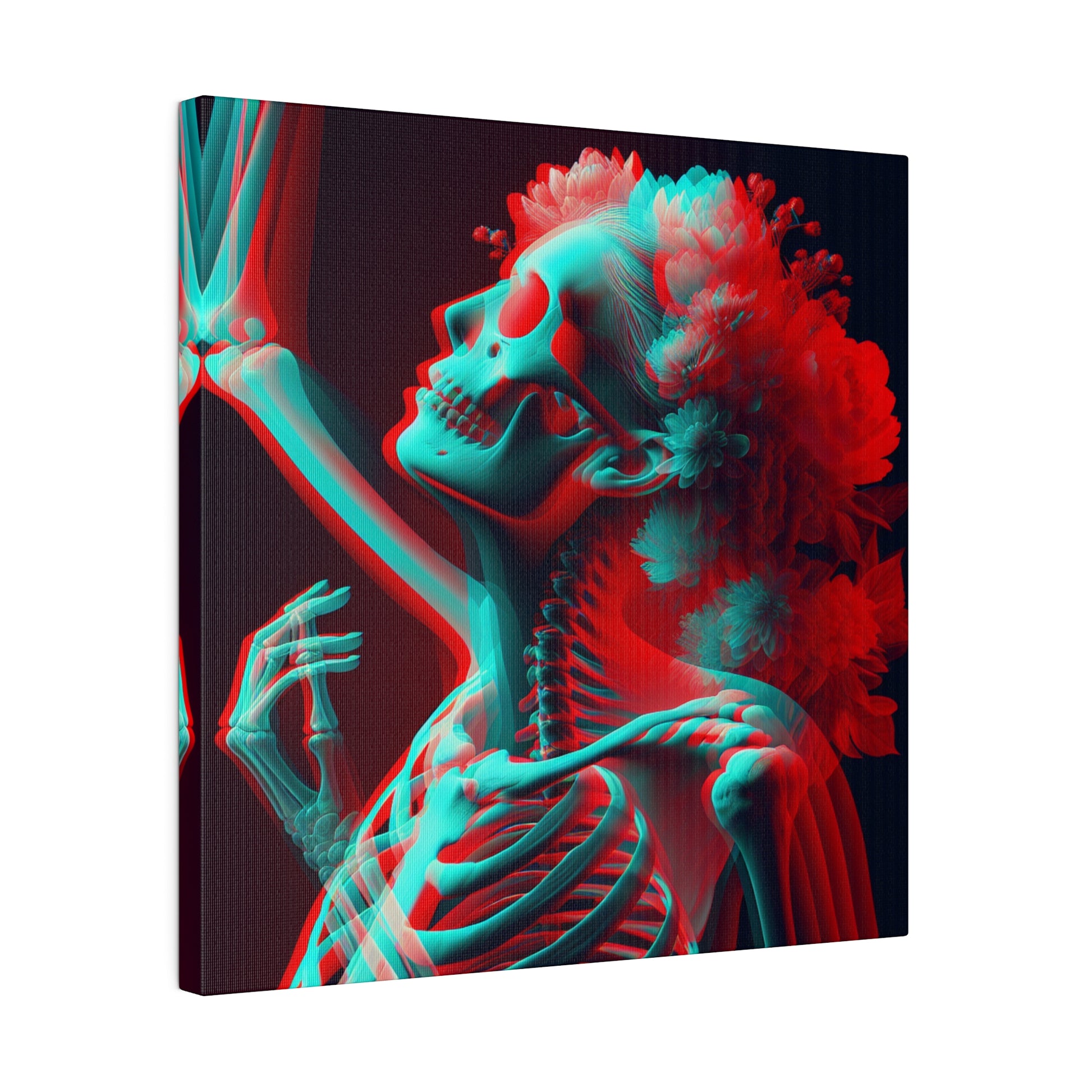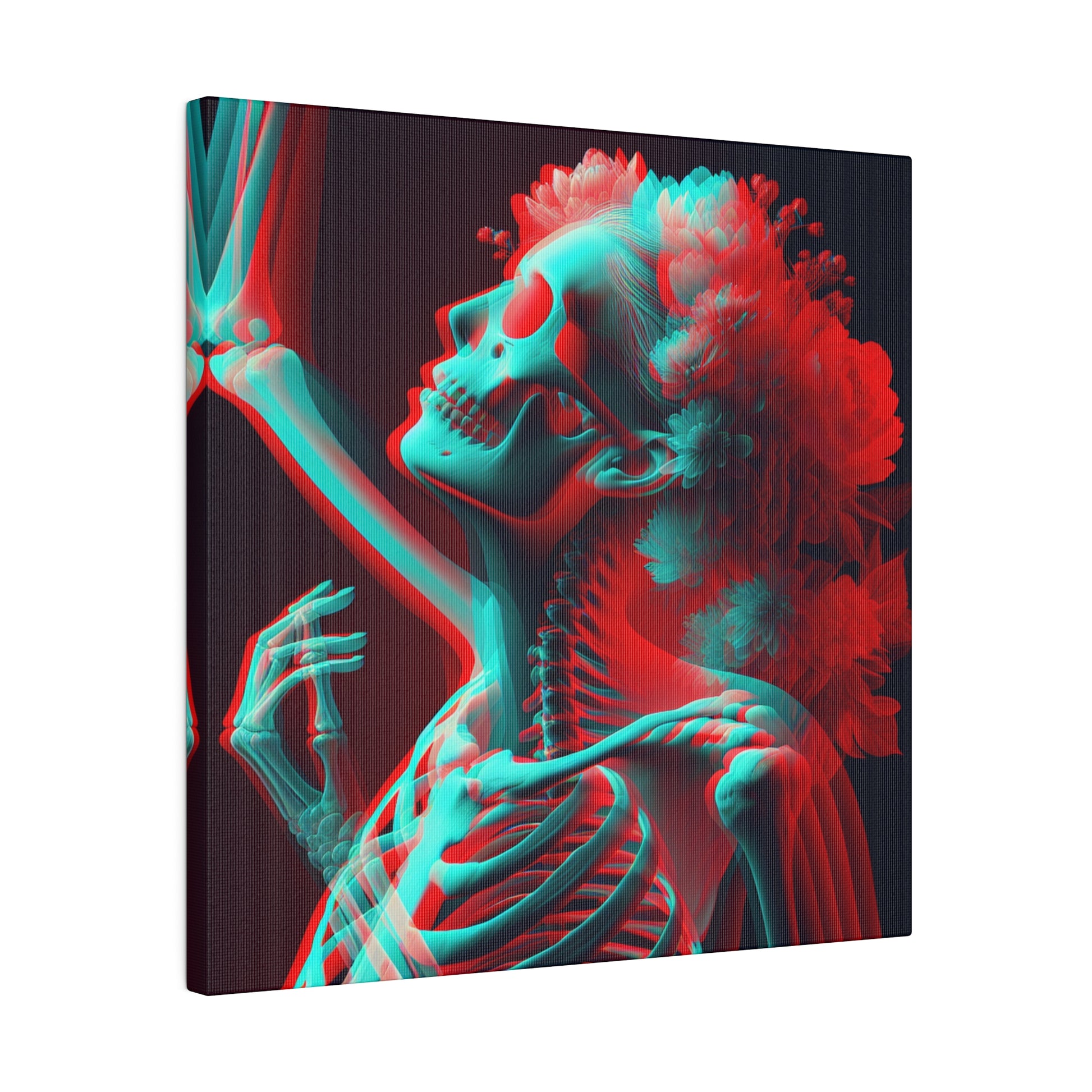 Introducing our mesmerizing anaglyph-style canvas, a stunning blend of bold colors and surreal imagery. Featuring a beautiful transparent human figure with overlapping red and cyan hues, adorned with flowers and intricate details. A unique and eye-catching addition to any art collection. #AnaglyphArt #SurrealCanvas #ColorfulDesign #AbstractArt #UniqueArtwork