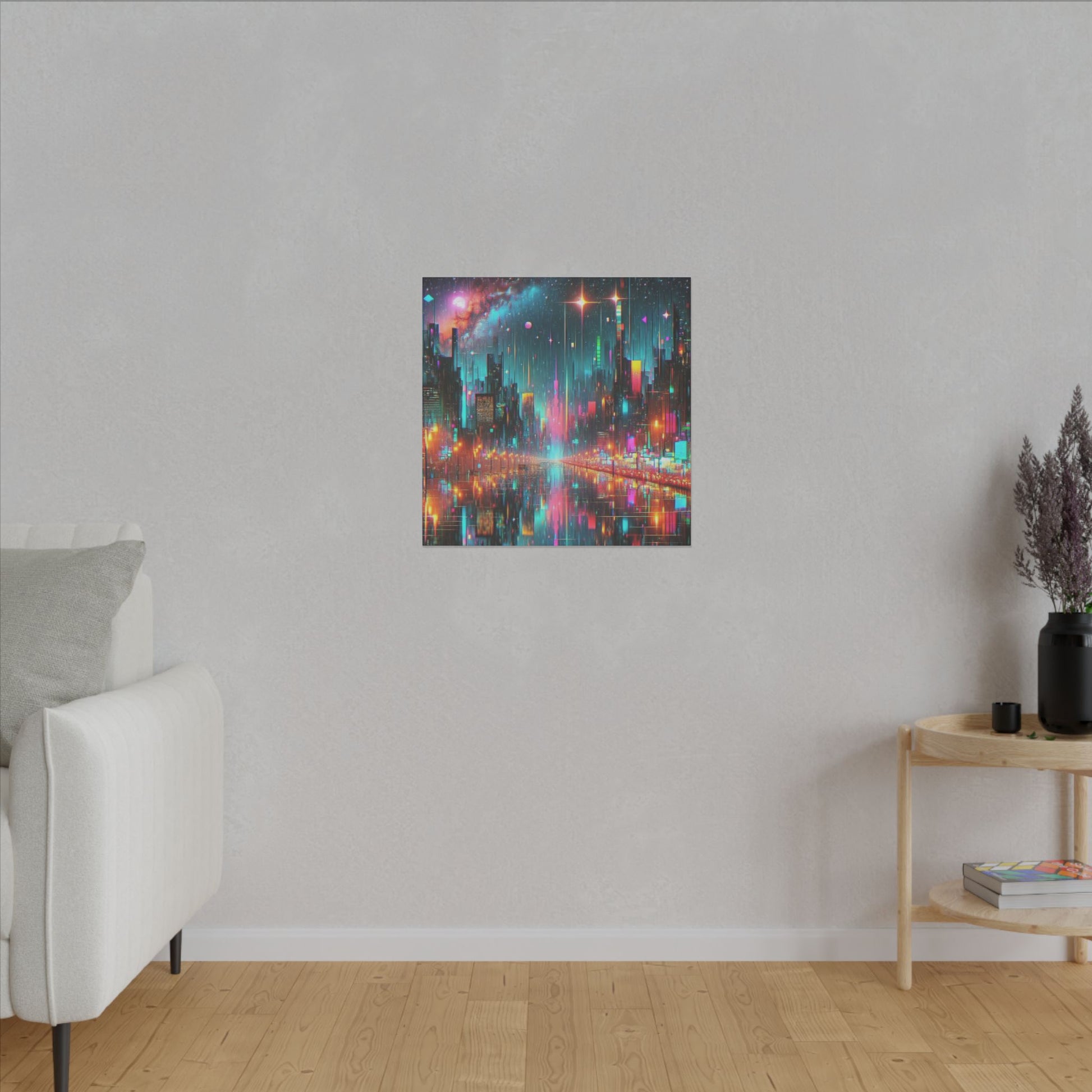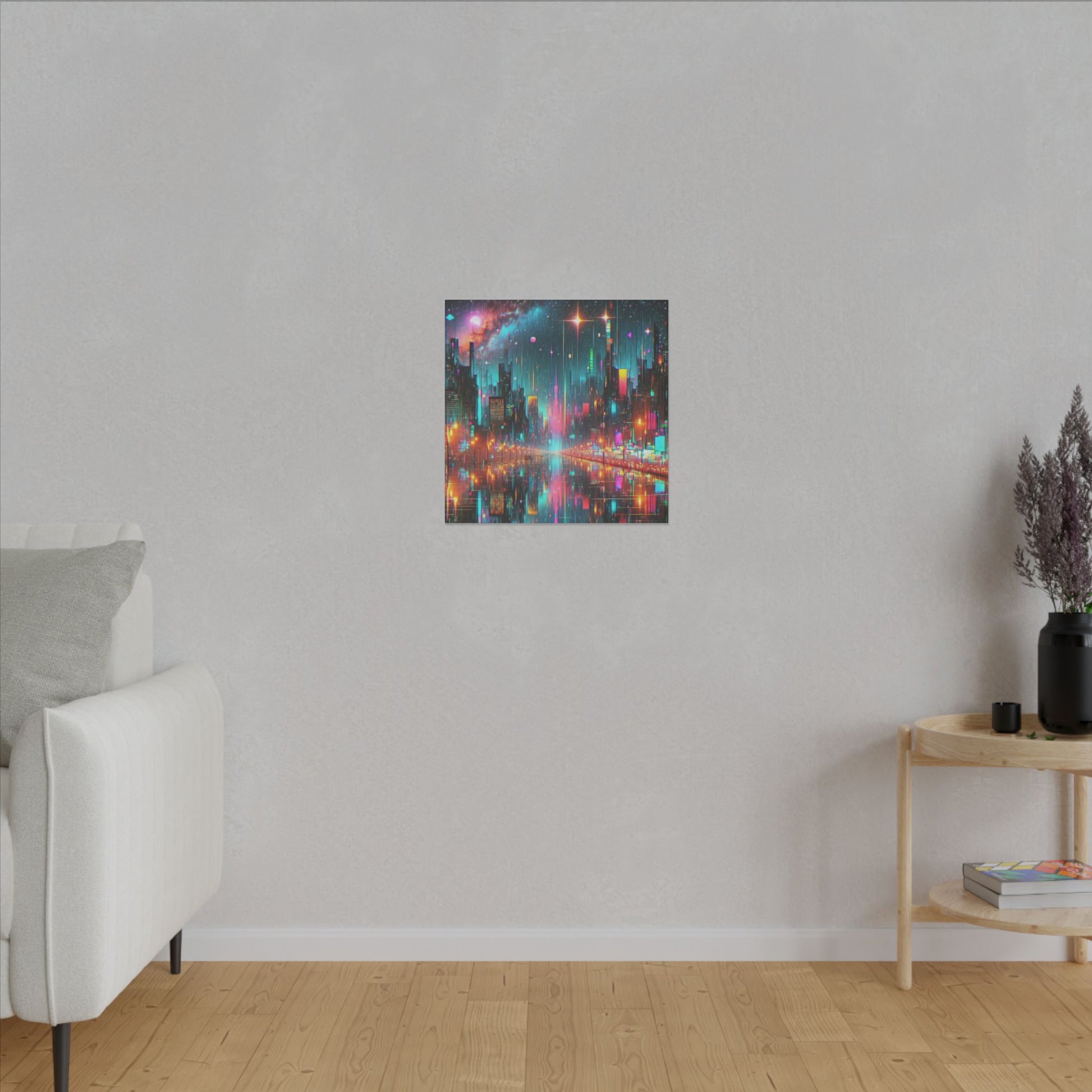 Immerse in digital nostalgia: vibrant cityscapes with neon glows on wet streets, pixelated dreamscapes of nature, or celestial vistas with cosmic allure. Bold contrasts & soft gradients create striking visual allure. #RetroAesthetics #GlitchArt #DigitalDreams #NeonNights #PixelatedBeauty #FuturisticArt #CanvasArt #CityGlow #CosmicWonder #AbstractVisions