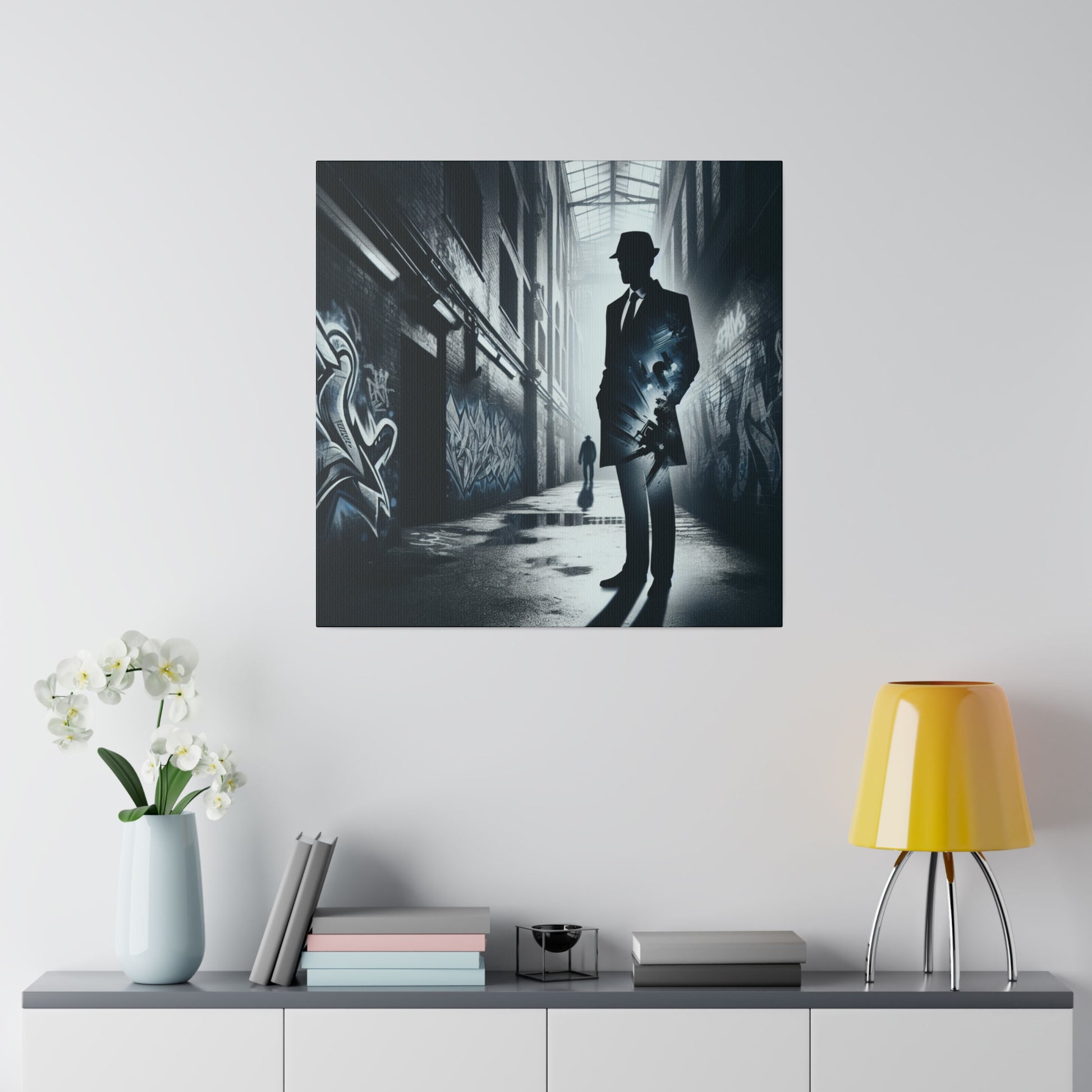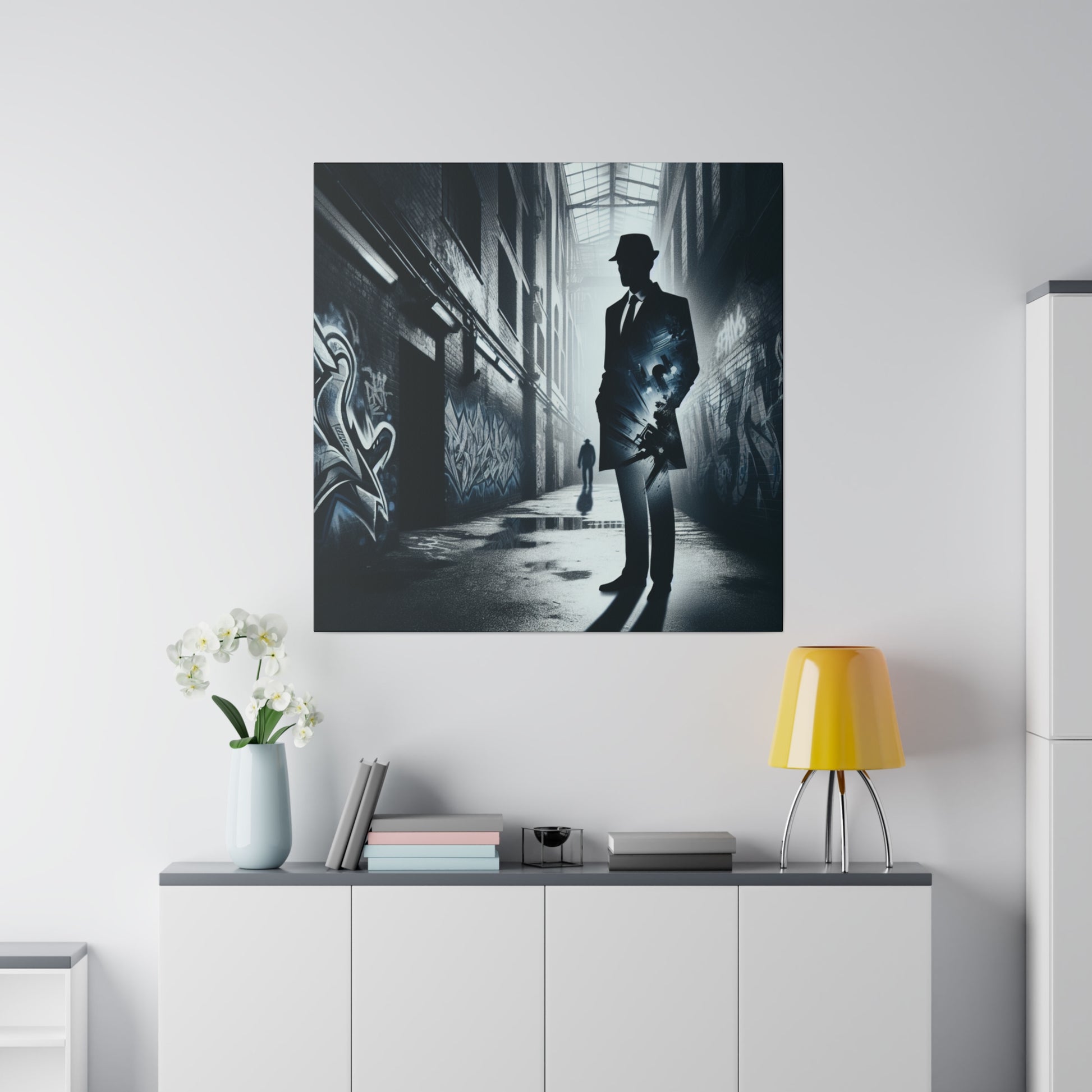 Unleash your inner spy with our Banksy-inspired Secret Agent Man canvas. Featuring mysterious shadows and edgy designs, this piece adds intrigue to any space. Elevate your decor with a touch of espionage. #BanksyInspired #SecretAgentMan #CanvasArt #MysteriousDesign #EdgyArt #HomeDecor #ArtisticExpression #SpyArt #UniqueArtwork #ModernArt