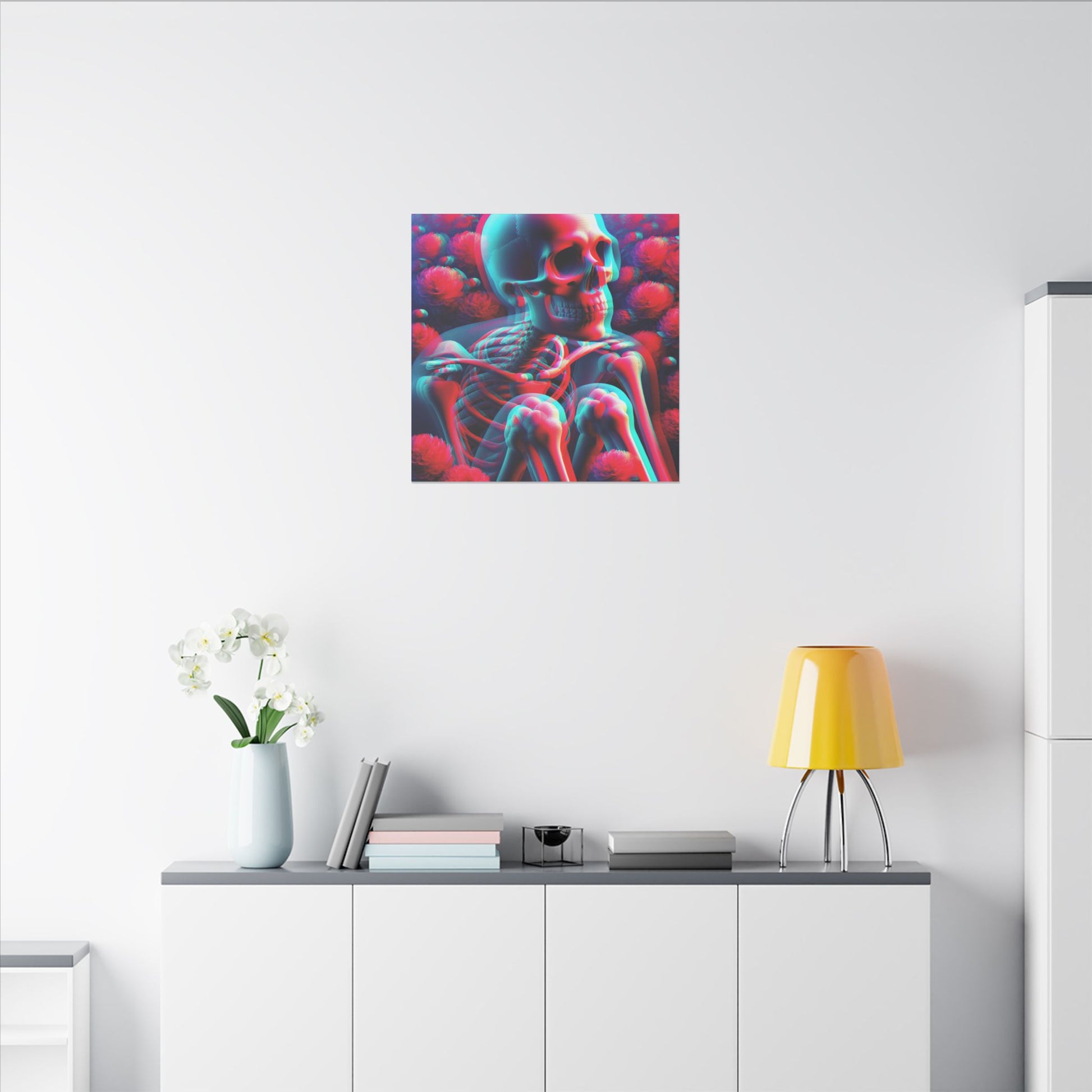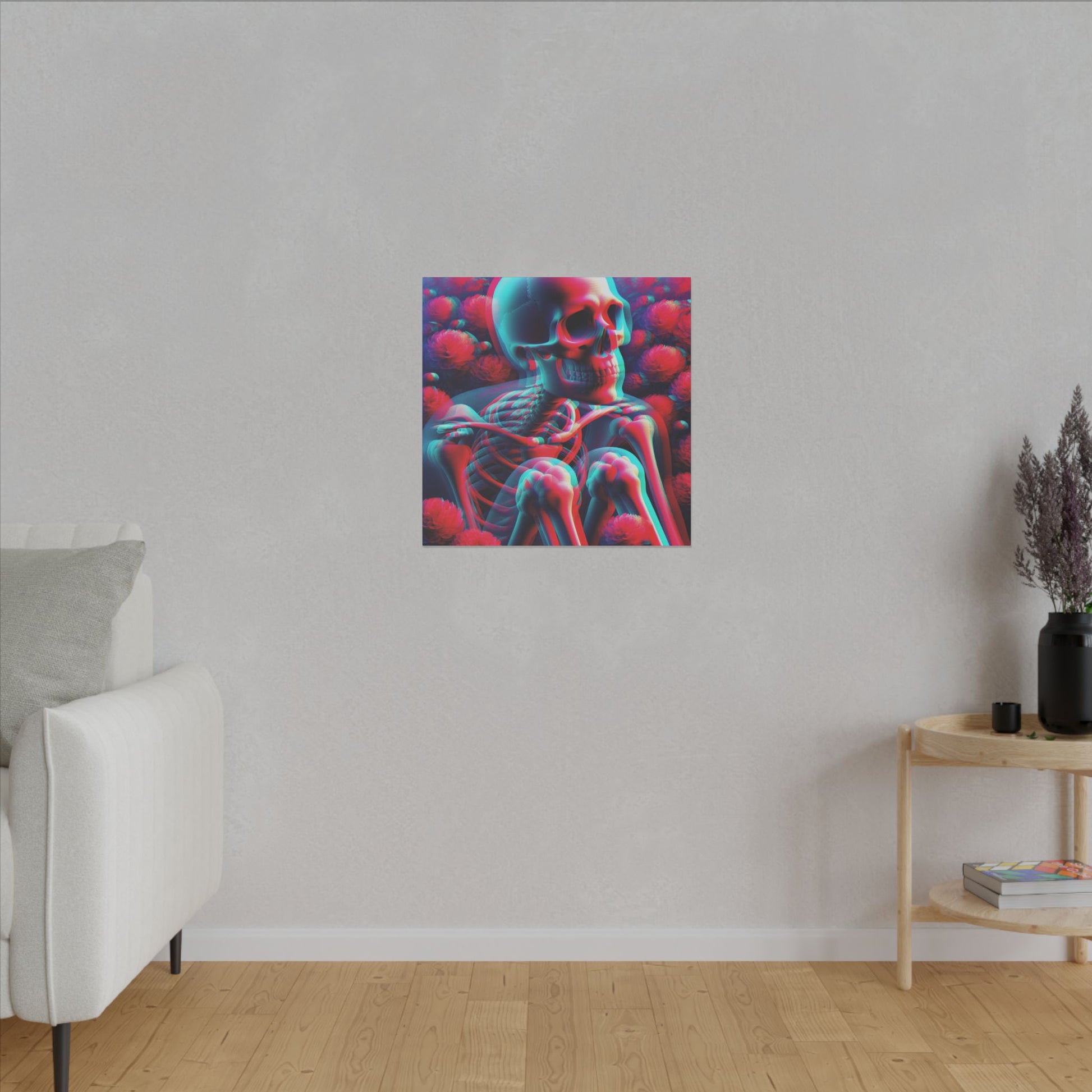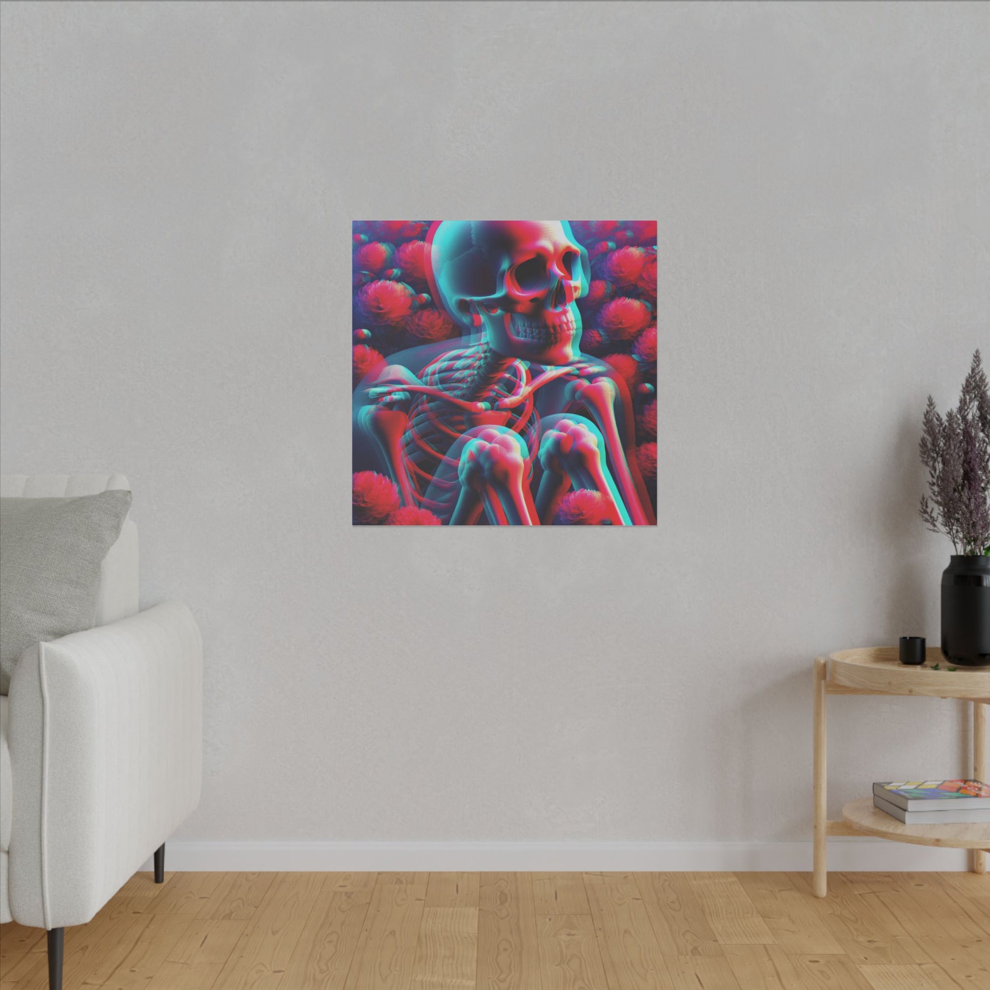 Bold & surreal anaglyph art: a transparent human form with visible skeleton, vivid red & cyan hues, and delicate flowers. A mesmerizing fusion of life & anatomy. πΏπ #AnaglyphArt #Surreal #CanvasPrint #DigitalArt #BoldDesign