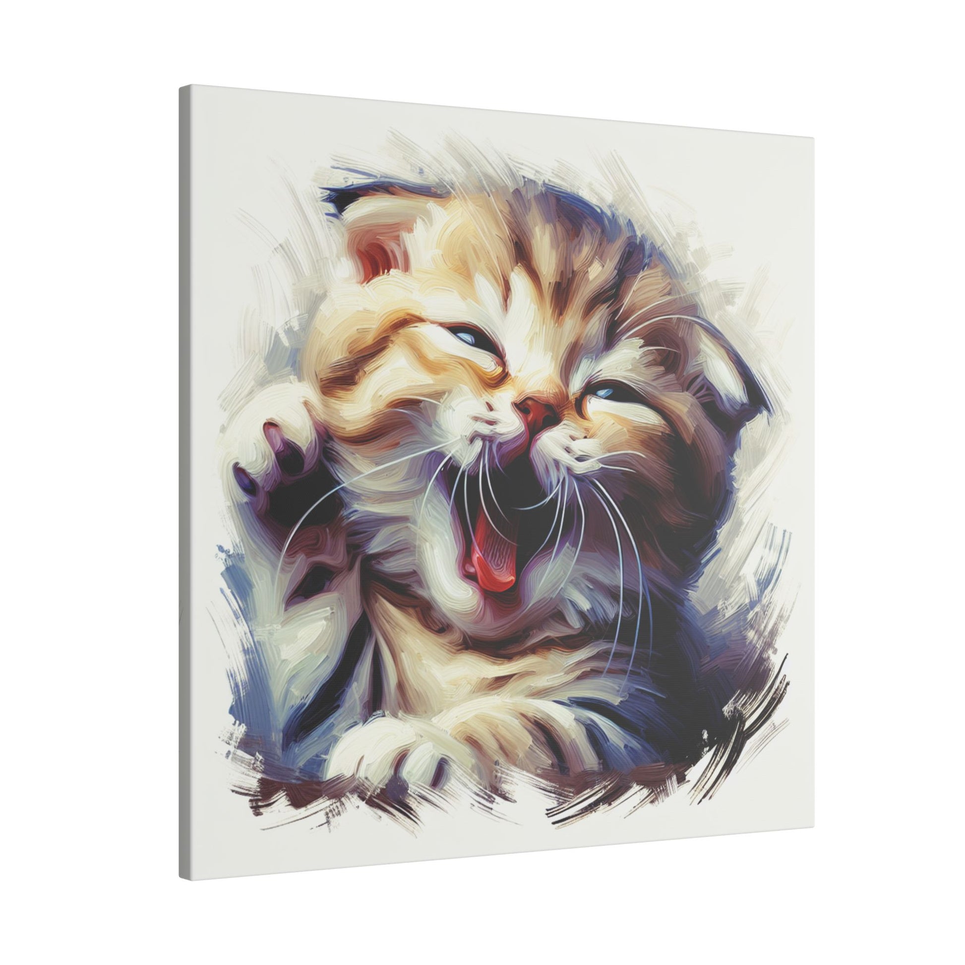 Elevate your space with this stunning little kitten sketched on canvas. The vibrant colors and texture create a striking visual impact, adding a touch of fun to any room. Bring a touch of artistry and charm with this unique canvas piece.