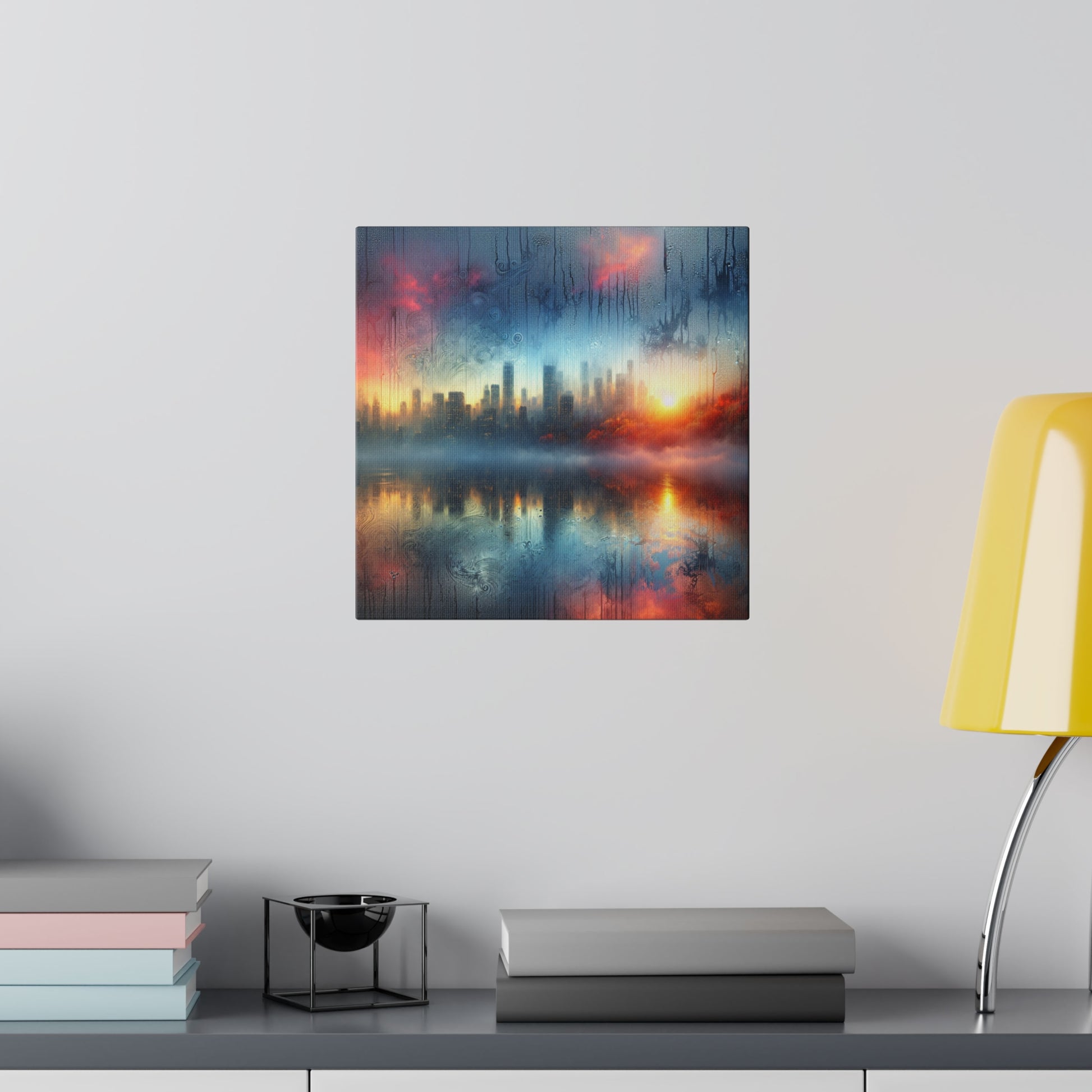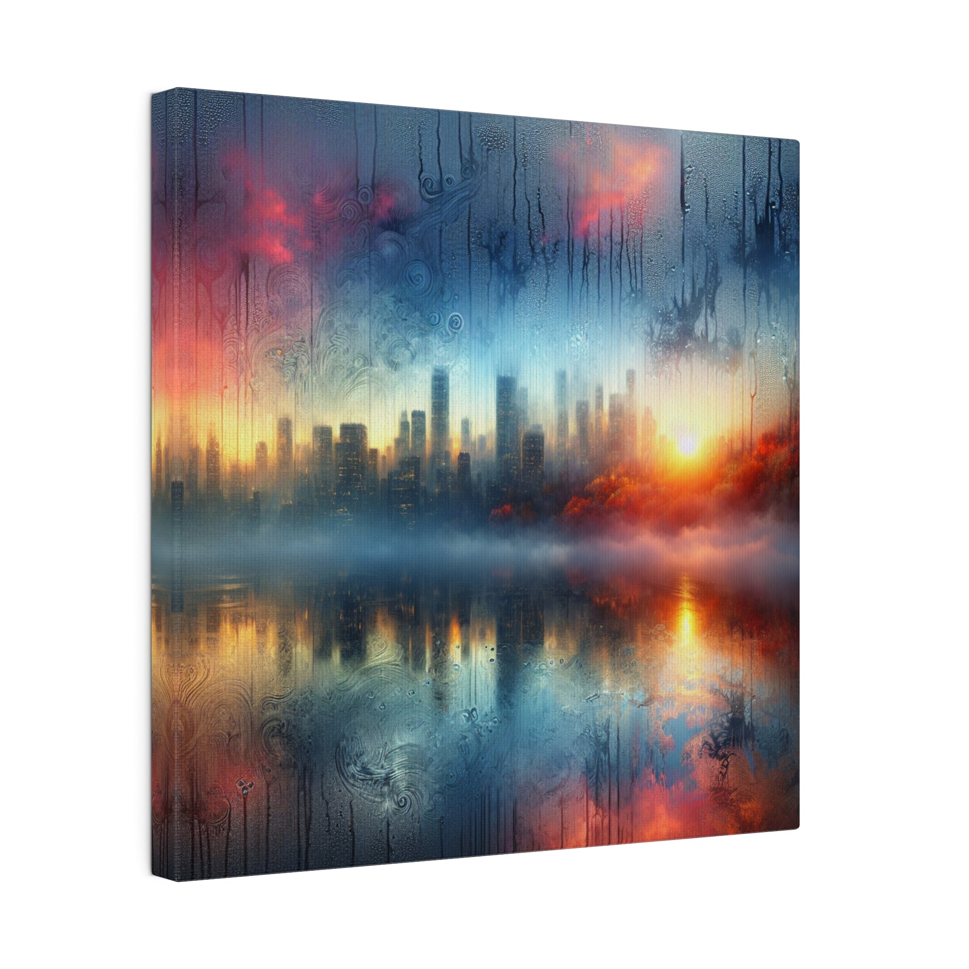 Discover the magic of condensation art with this hyperrealistic canvas! Featuring intricate water drops and playful doodles, this piece will transport you to an ethereal realm. The reflection captures a serene sunrise or a vibrant city skyline. Perfect for adding a touch of whimsy to your space. #condensationart #hyperrealism #waterdrops #ethereal #canvasart #serenity #whimsical #reflectiveart #dreamscape #artlovers