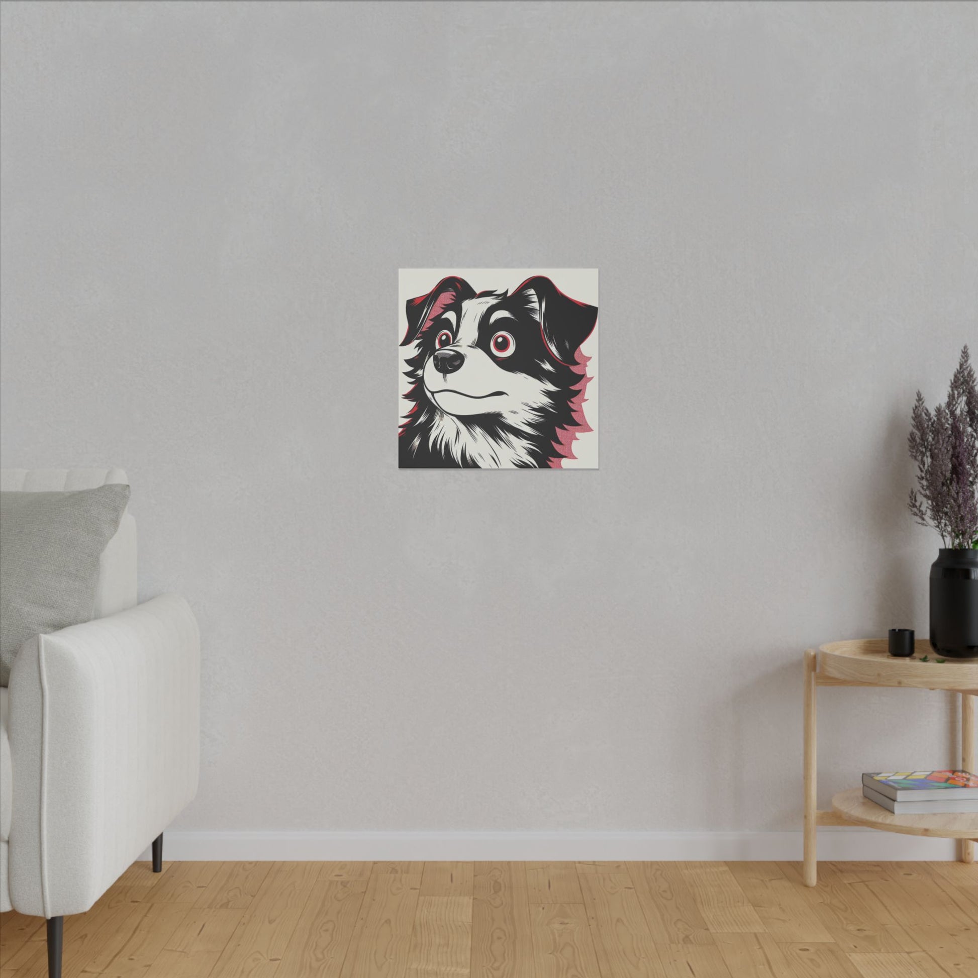 Elevate your space with this stunning little puppy sketched on canvas. The vibrant colors and texture create a striking visual impact, adding a touch of fun to any room. Bring a touch of artistry and charm with this unique canvas piece.