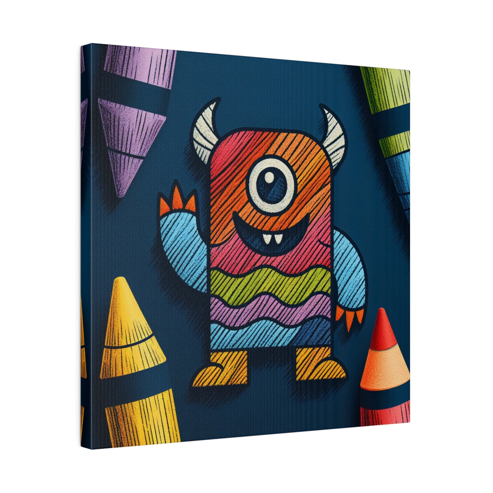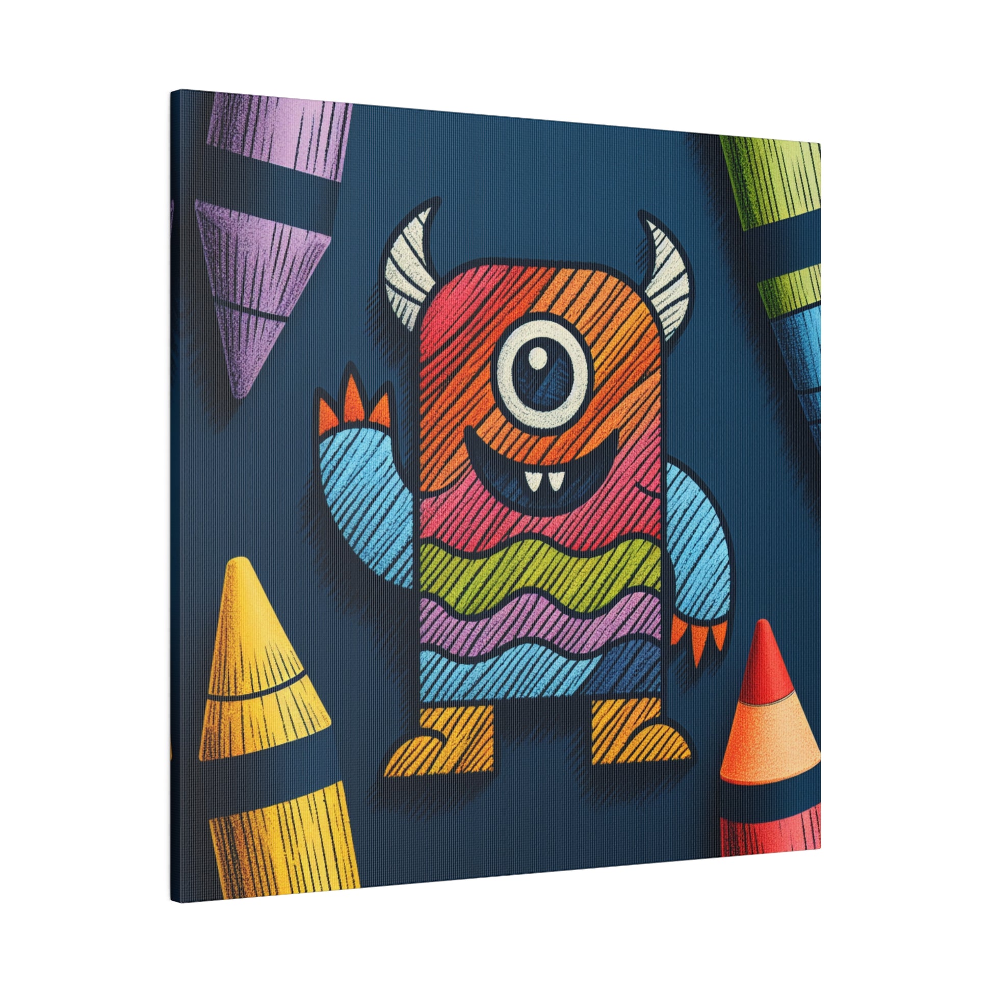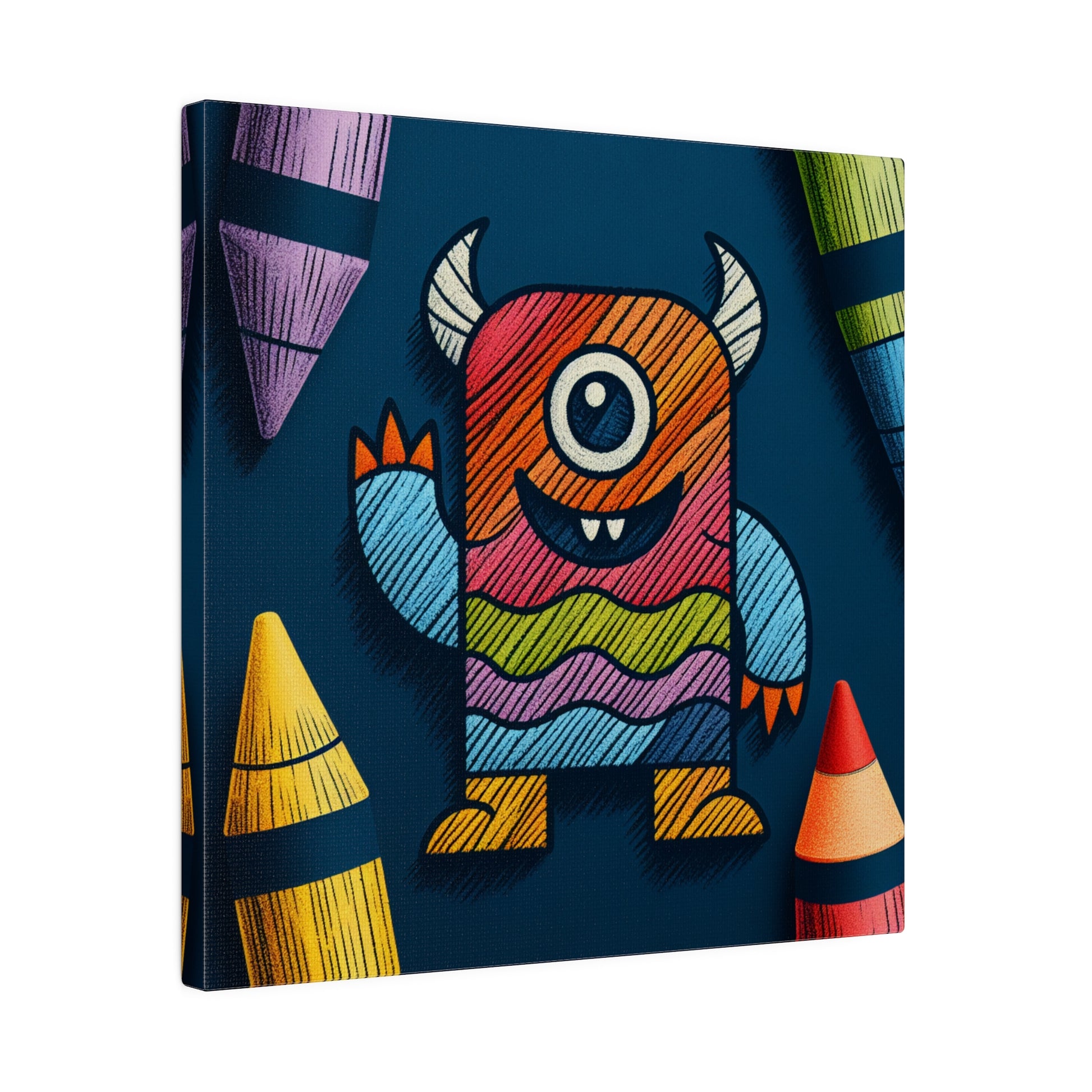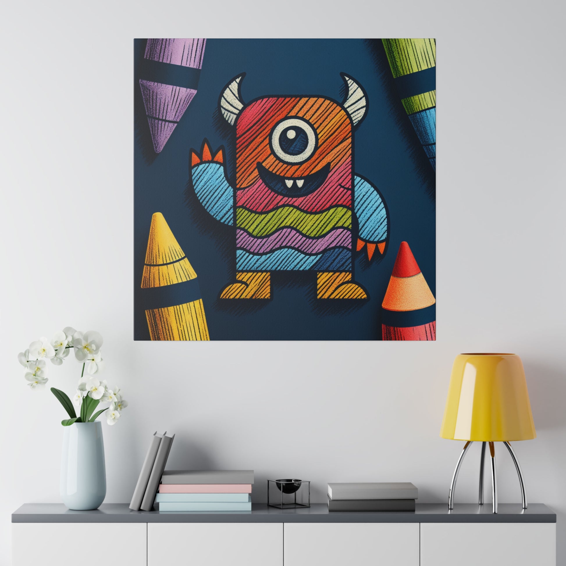 Brighten up your child's room with this adorable canvas featuring a cheerful crayon-textured monster! With fun geometric shapes and vibrant colors popping against a dark blue background, this friendly creature is sure to spark imagination and smiles. Perfect for playful spaces! #KidsDecor #CuteMonsters #PlayfulArt #BrightColors #CrayonArt #RoomMakeover #HappyVibes #NurseryDecor #ToddlerRoom #FriendlyMonsters