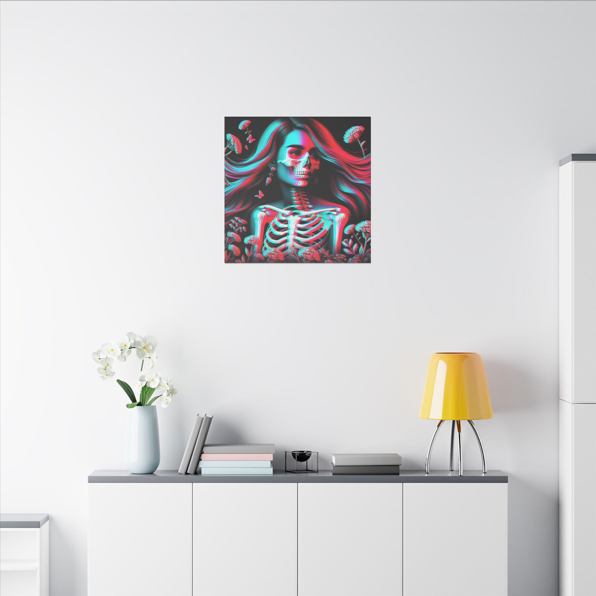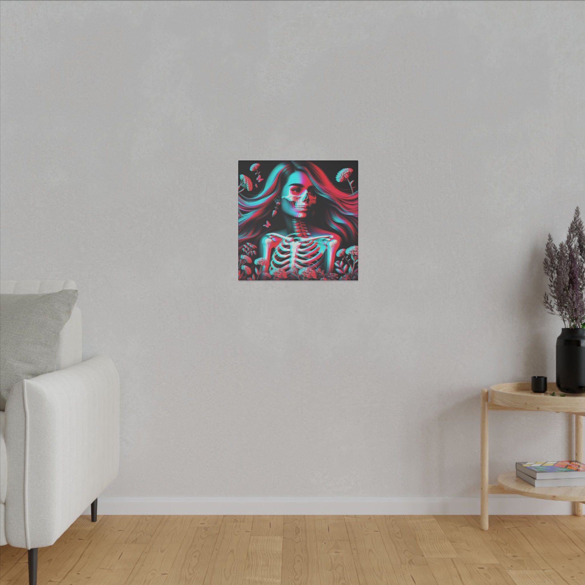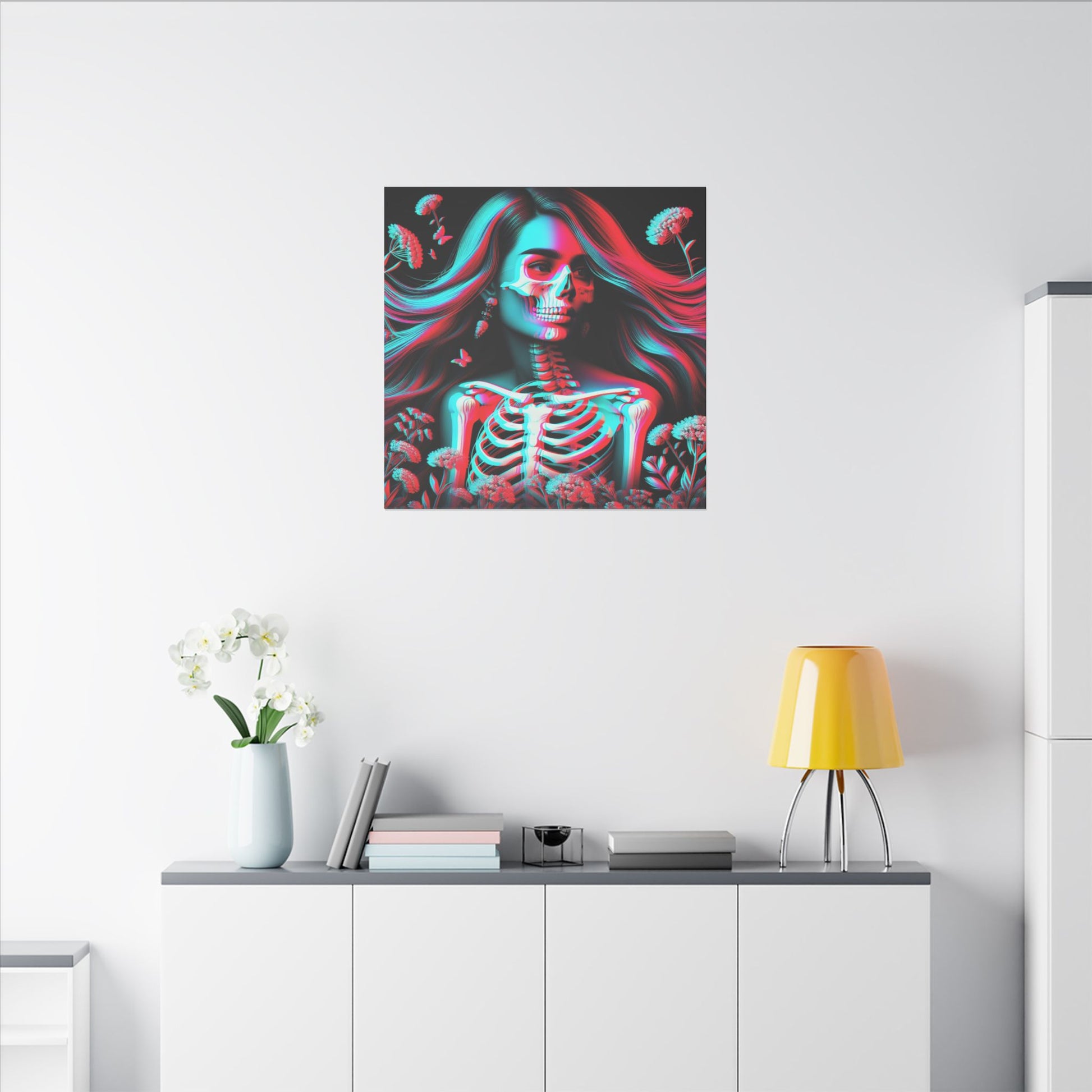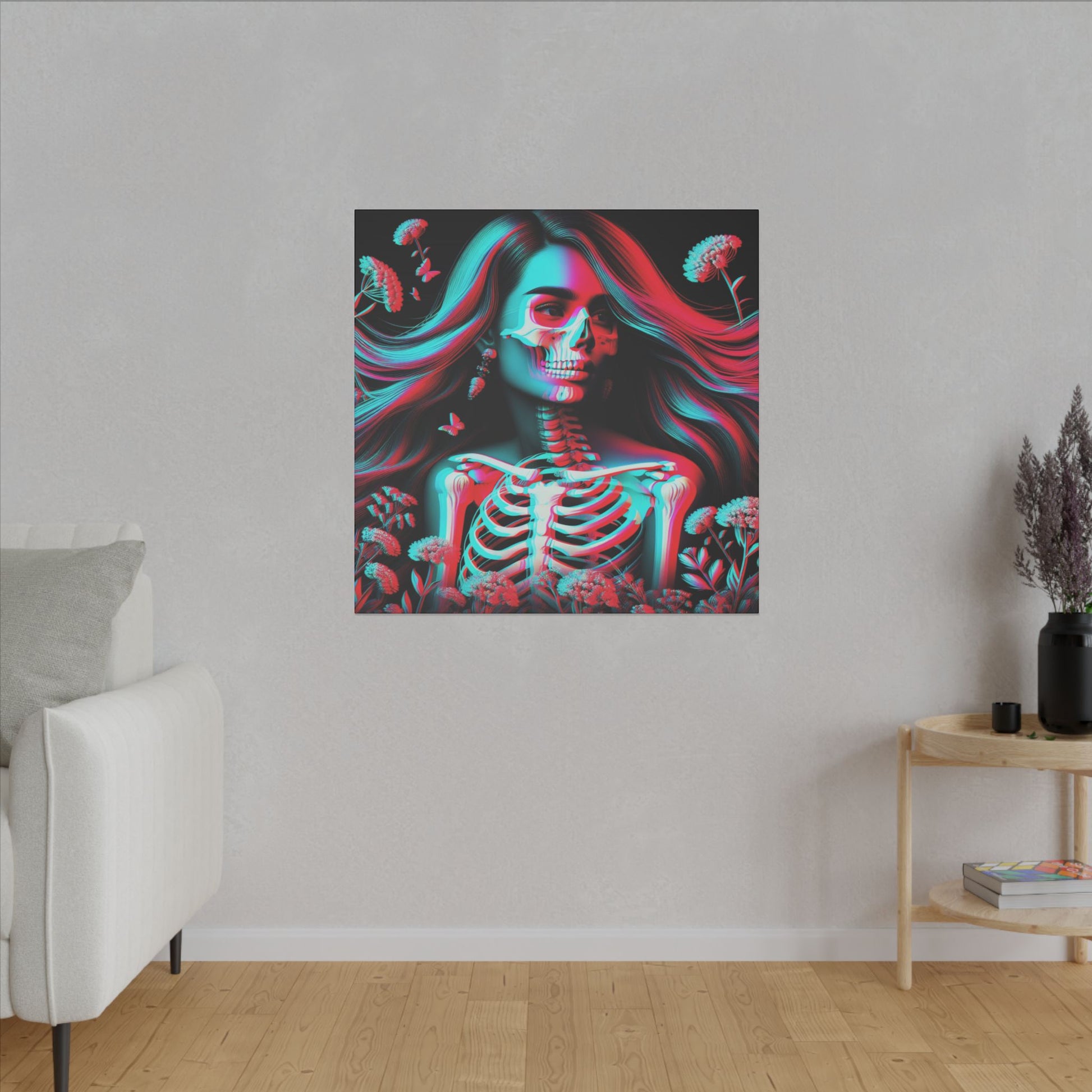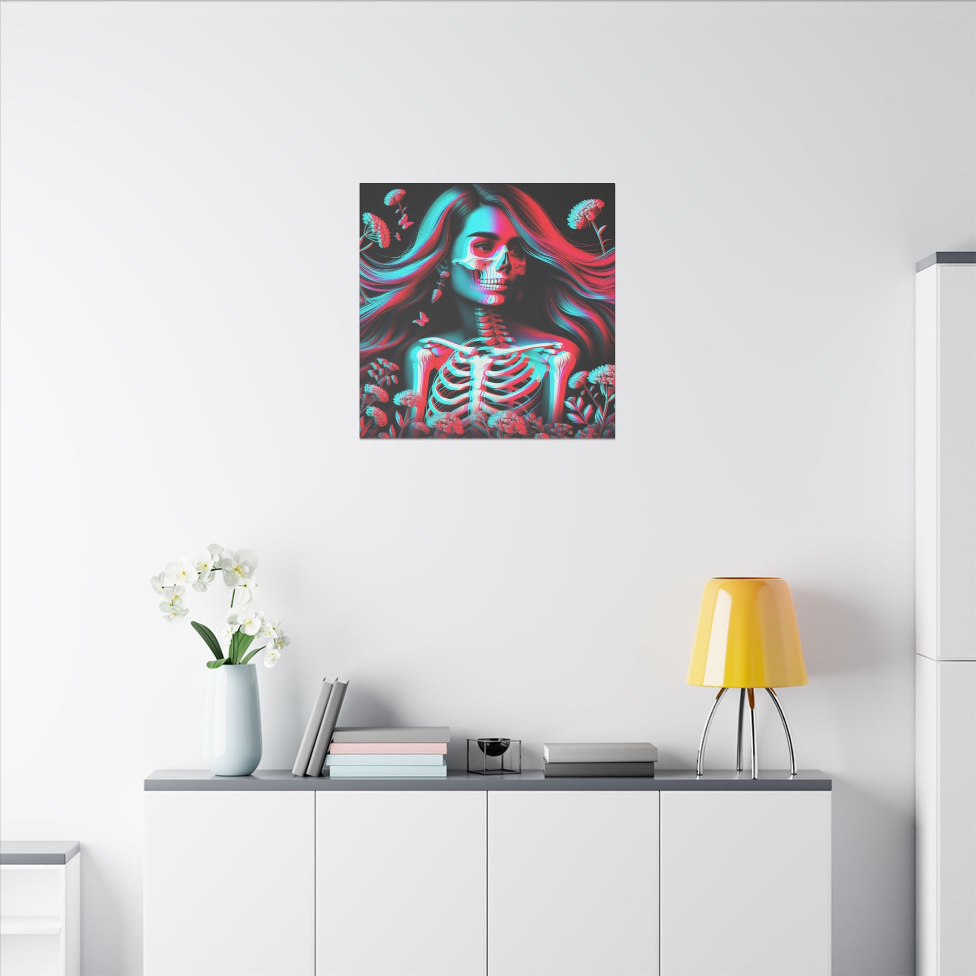Experience a mesmerizing blend of surrealism and vibrant colors with this bold anaglyph-style canvas. The transparent human figure and intricate floral designs create a stunning contrast against the red and cyan tones. Elevate your space with this unique and captivating piece of art. #surrealism #anaglyph #colorfulart #skeleton #floraldesigns