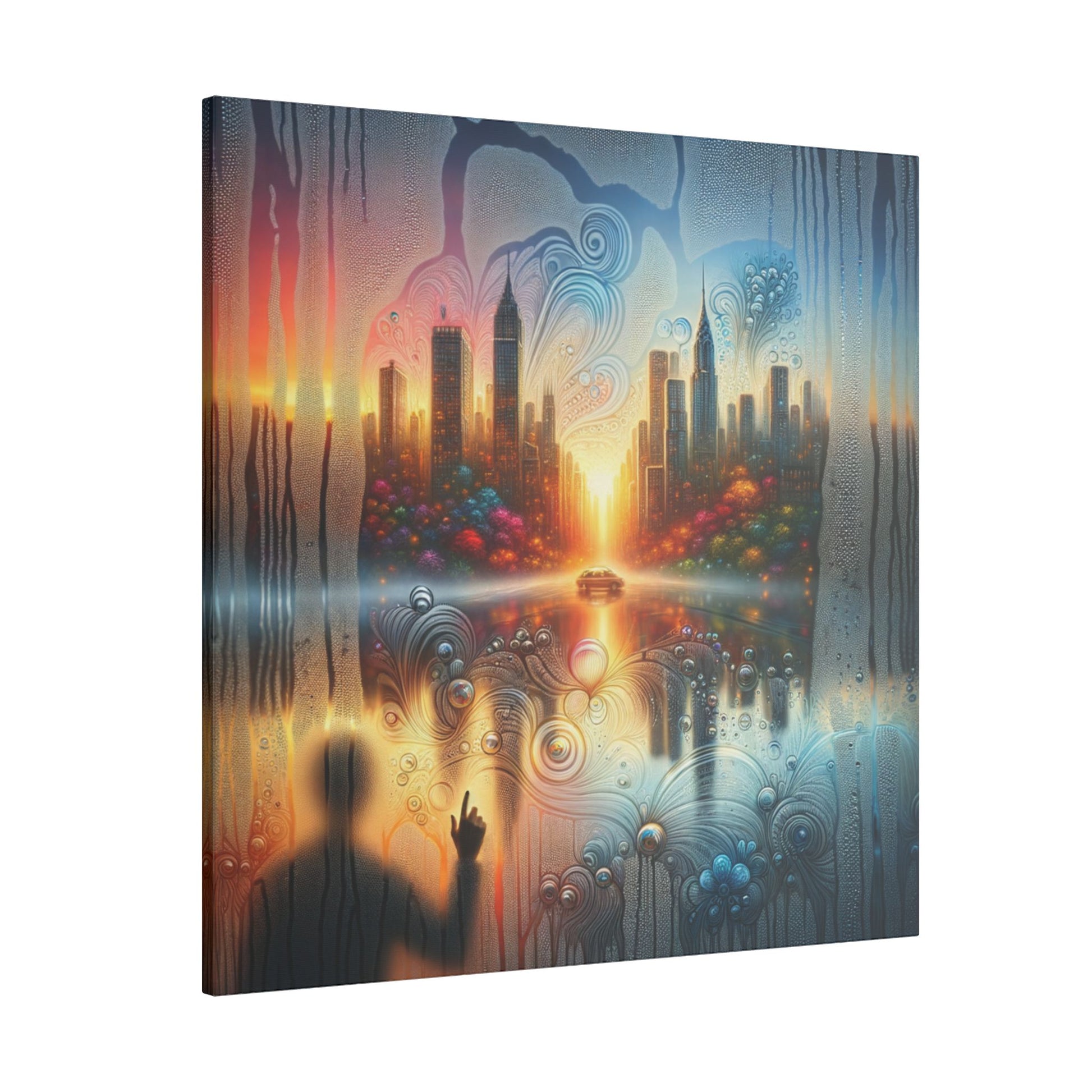 Immerse yourself in the world of illusion with this hyperrealistic canvas featuring a trompe-l'oeil effect of condensation on a window. Intricate water drops and playful doodles create a whimsical scene, while a soft background adds depth. Perfect for adding a touch of magic to any room.