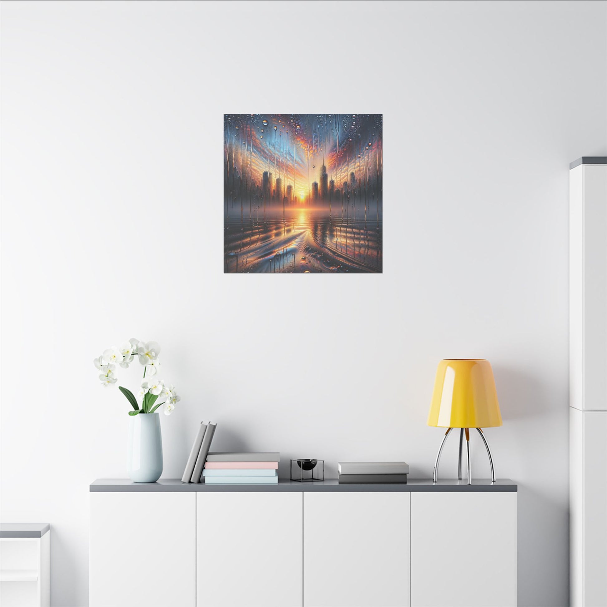 Adorn your space with this captivating trompe l'oeil canvas, featuring a hyperrealistic condensation effect. Intricate water droplets cascade down the surface, while a dreamy, out-of-focus background sets the mood. Choose from sunrise, cityscape, forest, beach, or whimsical designs. Add a touch of intrigue to your decor! #CanvasArt #TrompeL'oeil #Hyperrealistic #CondensationEffect #ArtDecor #DreamyScenes #HomeDecor #WallArt #UniqueArt #StatementPiece
