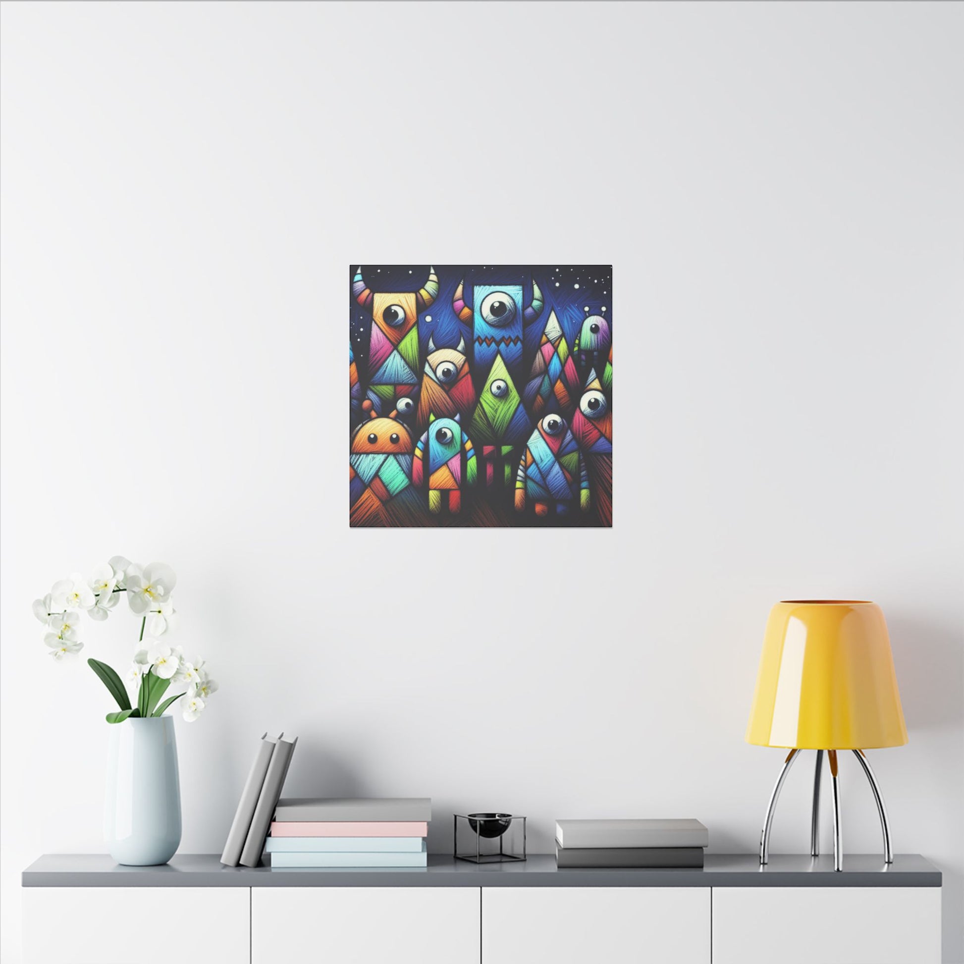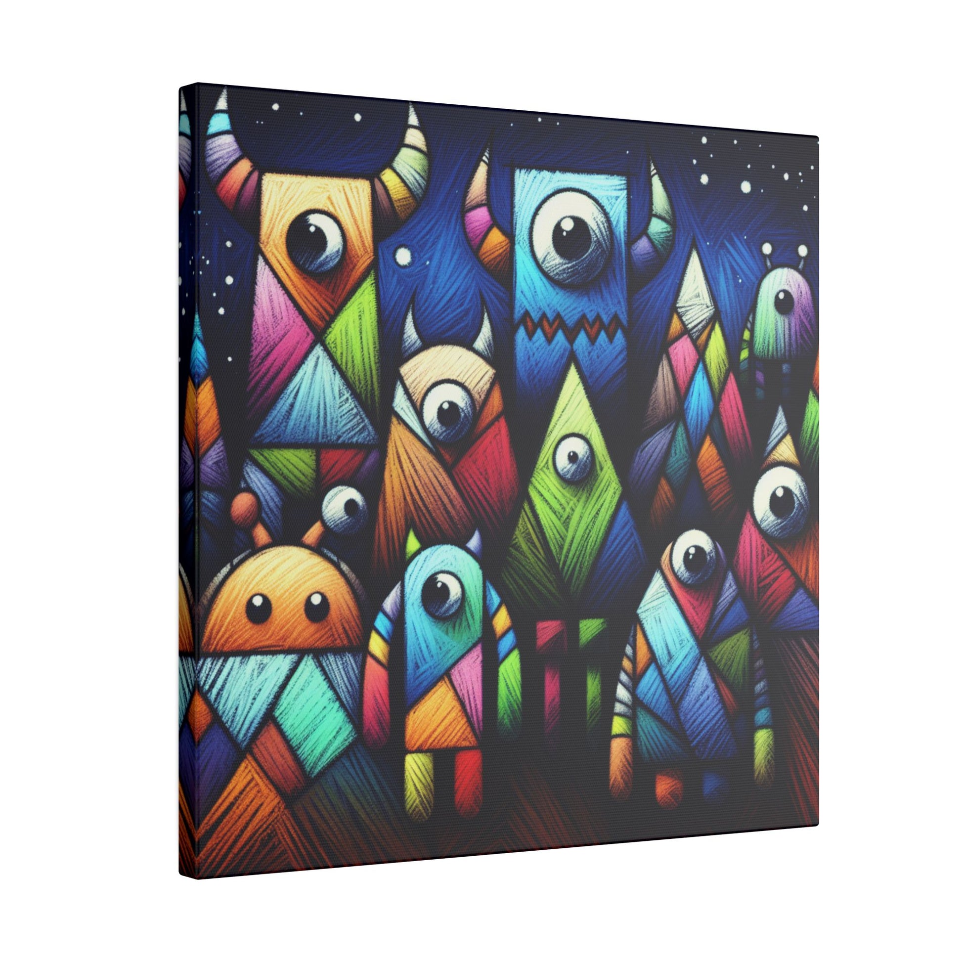 Introducing our adorable and quirky Crayon Textured Monster Canvas, featuring colorful monsters with geometric bodies on a deep blue background. This vibrant and unique artwork is sure to add a pop of fun to any space. Perfect for kids' rooms or playful decor enthusiasts! 🎨👹 #MonsterArt #ColorfulCanvas #CrayonTextures #GeometricDesign #KidsRoomDecor #PlayfulArt #UniqueArtwork #FunWallArt #QuirkyHomeDecor #CanvasArtwork